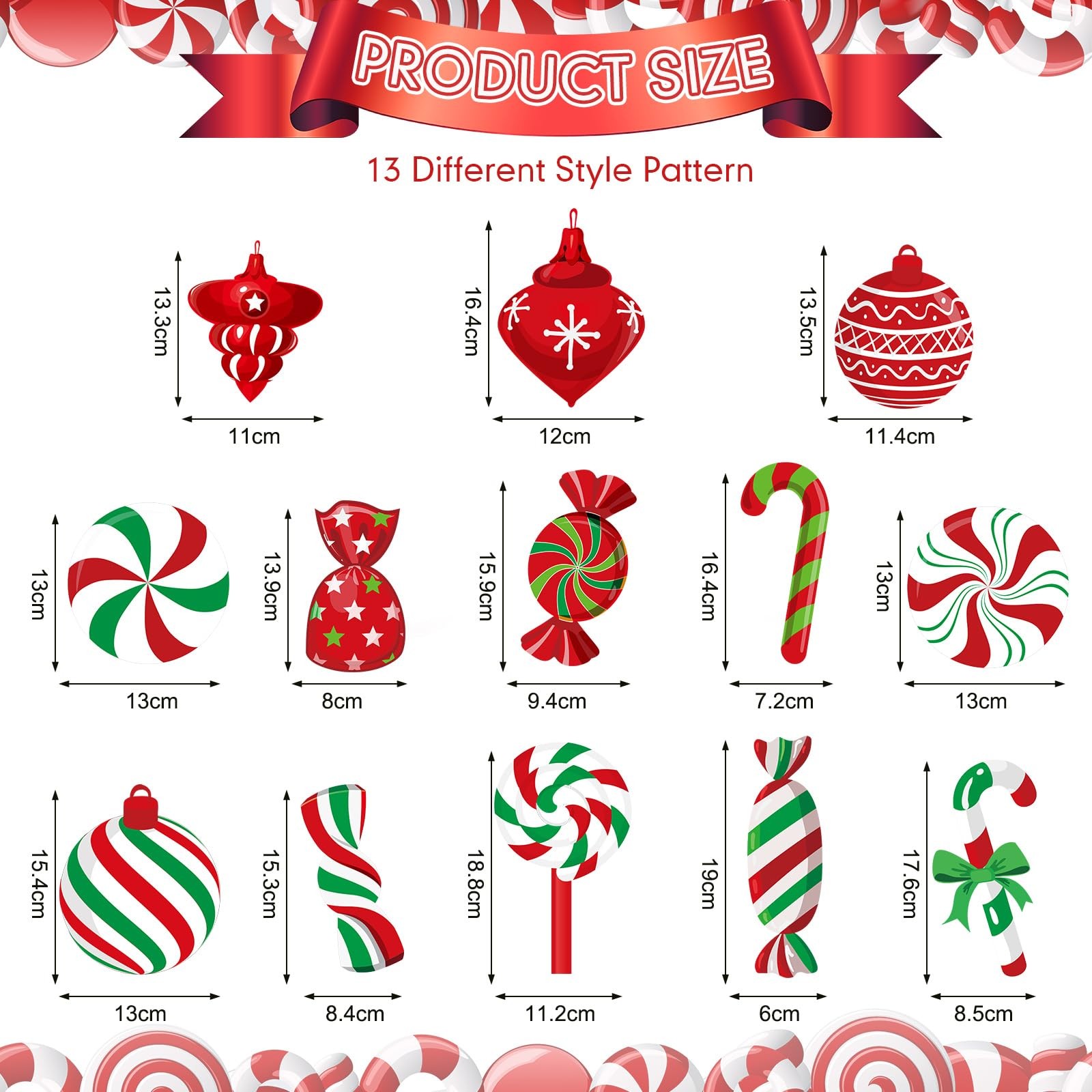 56 Pcs Christmas Peppermint Candy Hanging Swirls Decorations Red and White Ho...