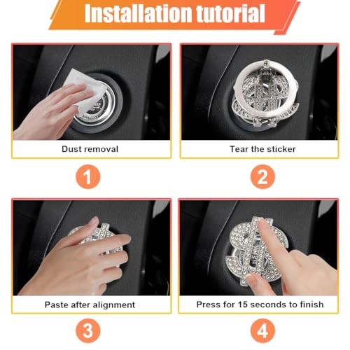 Bling Dollar Car Push Start Button Cover with Rhinestone, Anti-Scratch White