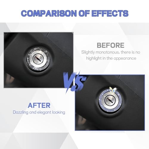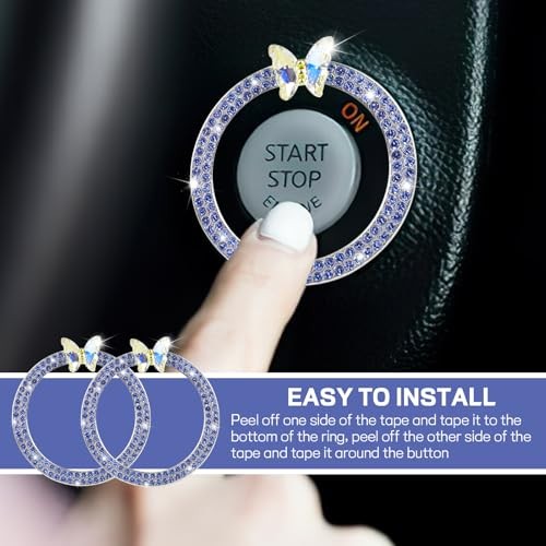 2PCS Bling Car Push Start Button Decoration Ring, Rhinestone Car Light Blue