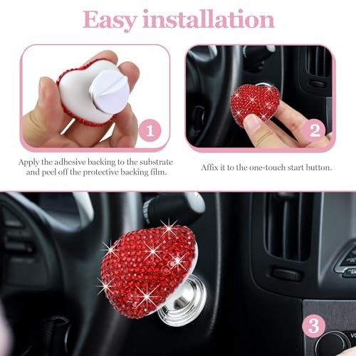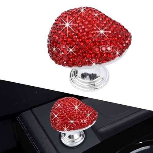 Bling Car Push Start Button Cover, Heart Shape One-Touch Start Button with Red