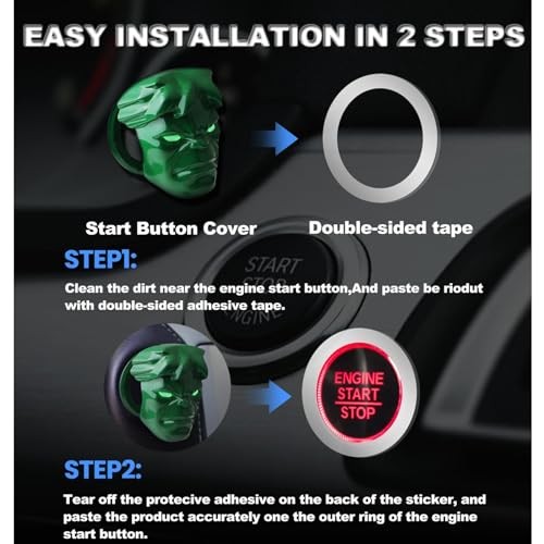 Car Push to Start Button Cover, Universal Car Engine Ignition Start Hulk Green
