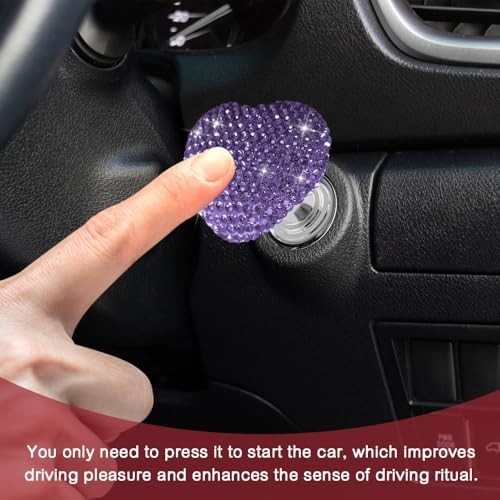 Bling Car One-Touch Start Button, Push Start Button Cover, Heart Purple 1
