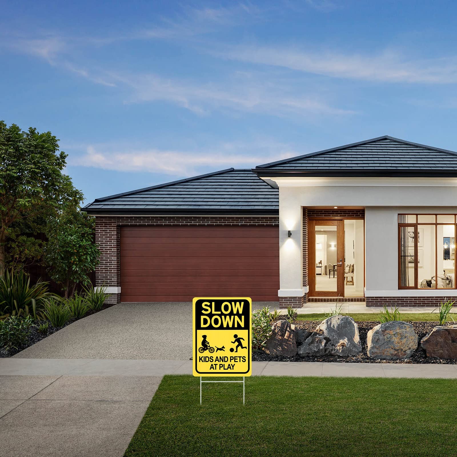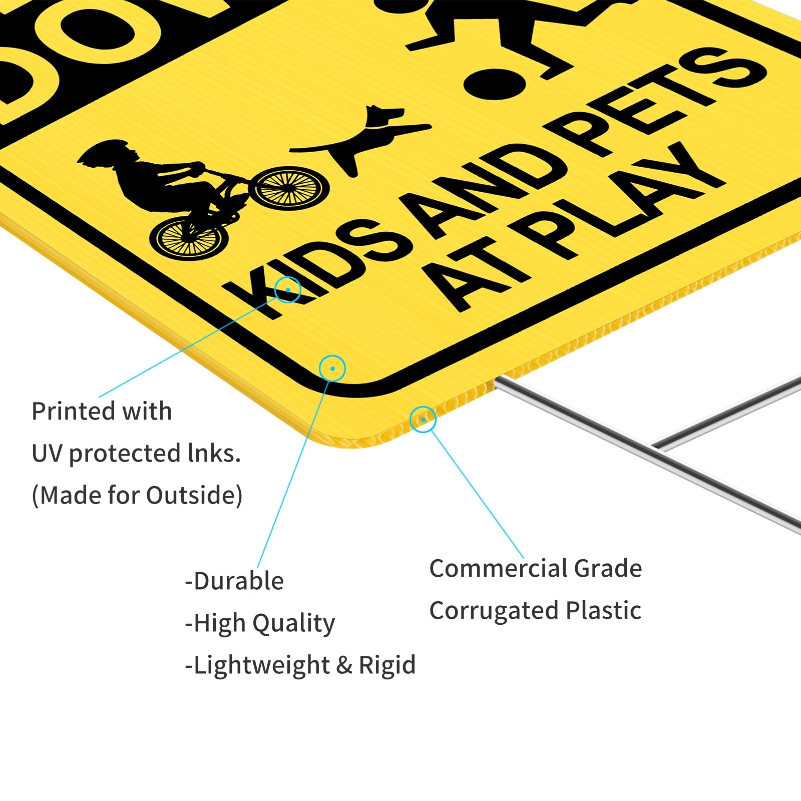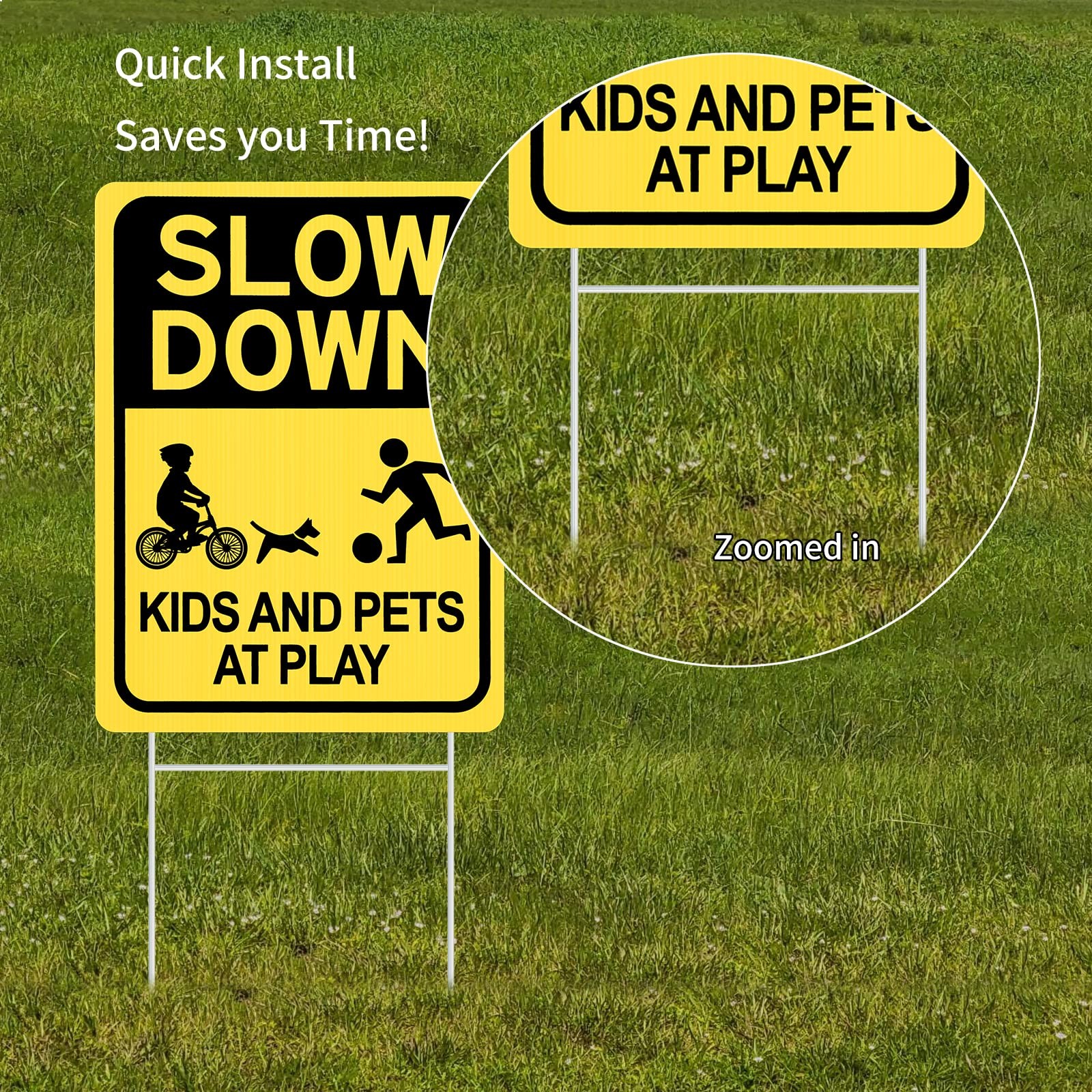 Slow Down Sign With Metal Stake, 16x12inches, Kids and Pets at Play 1 Pack