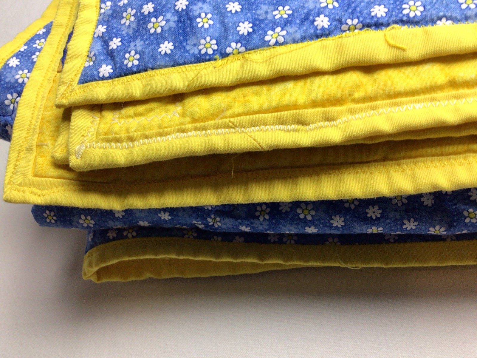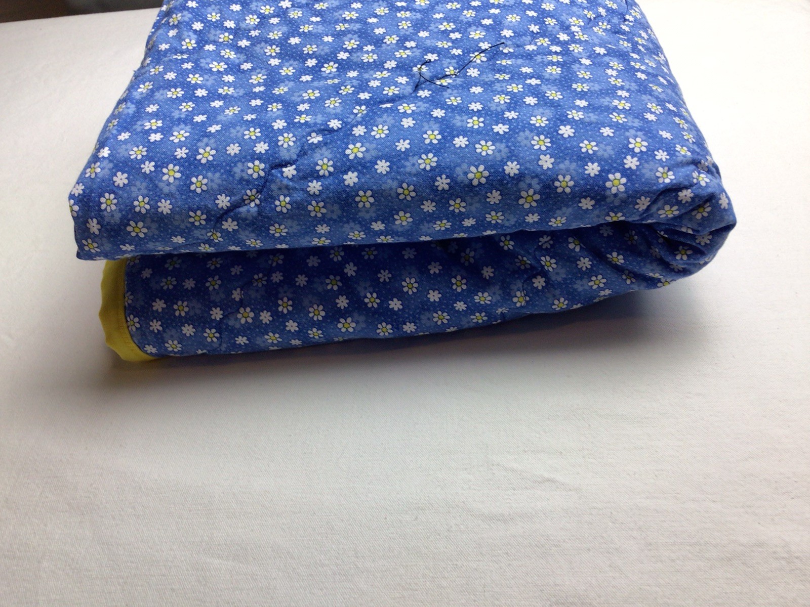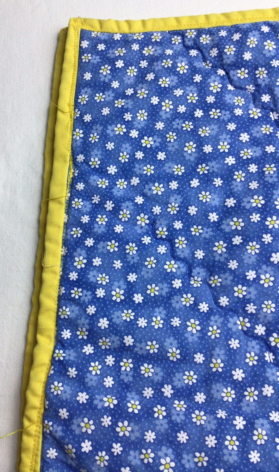 Baby Quilt Handmade Blue Yellow Sun clouds stars moon daisies Crib 36x42