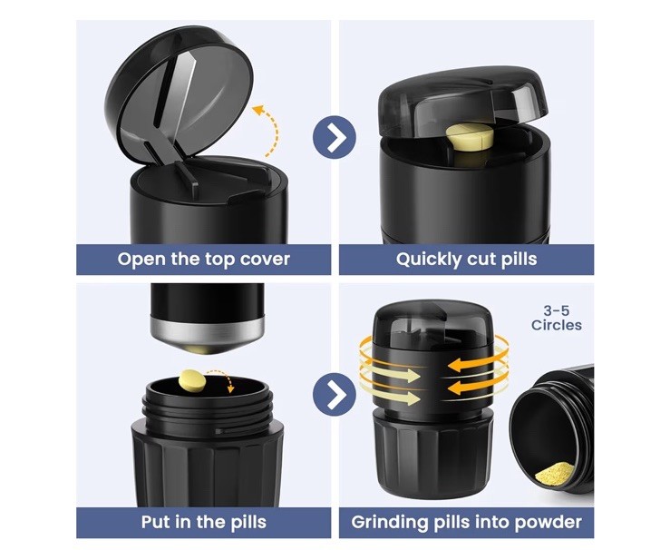 3-in-1 Pill Crusher Grinder w/ Stainless Steel Pestle Tablet Cutter Storage