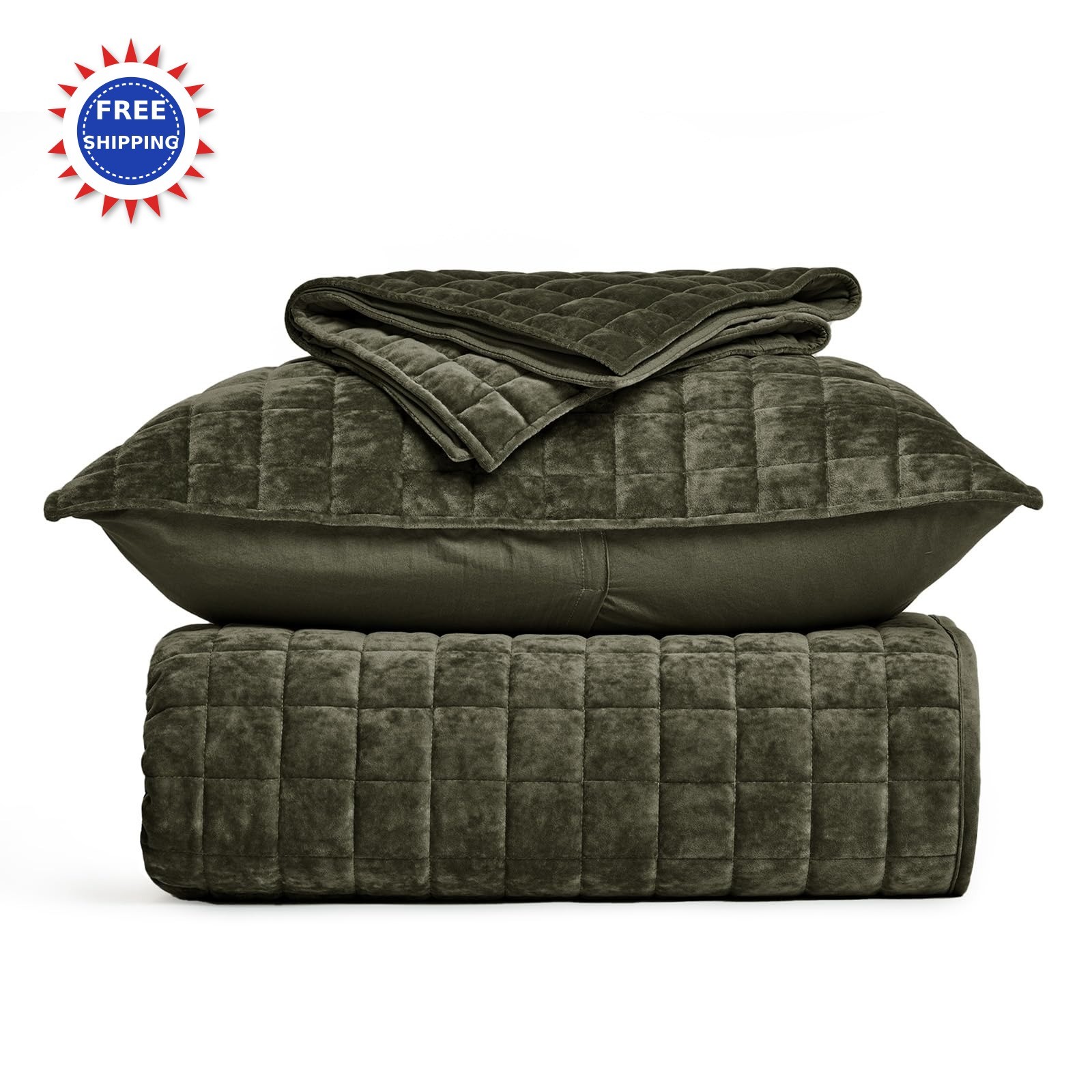 RECYCO Luxury Velvet Quilt Set King Size Lightweight Velvet Comforter Set