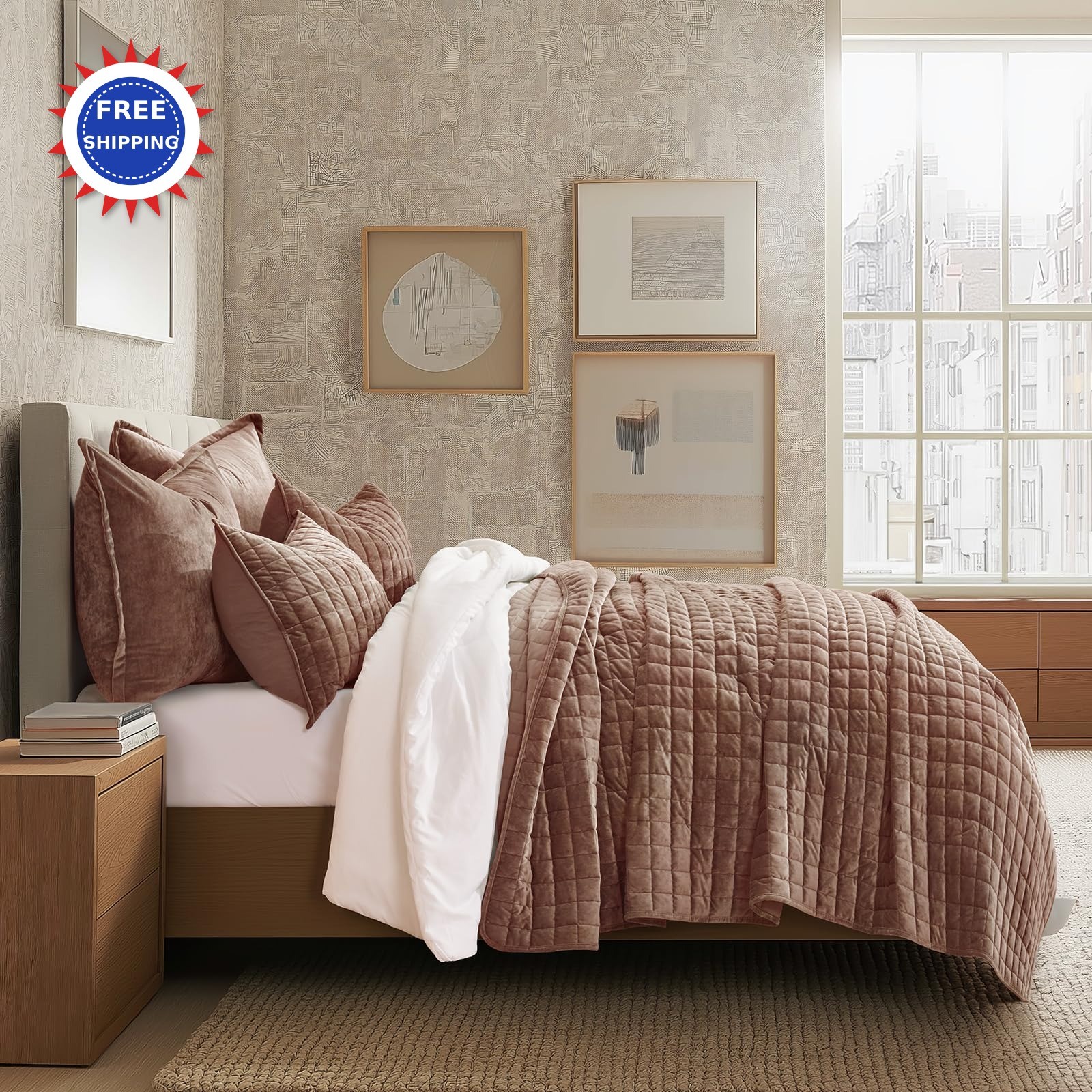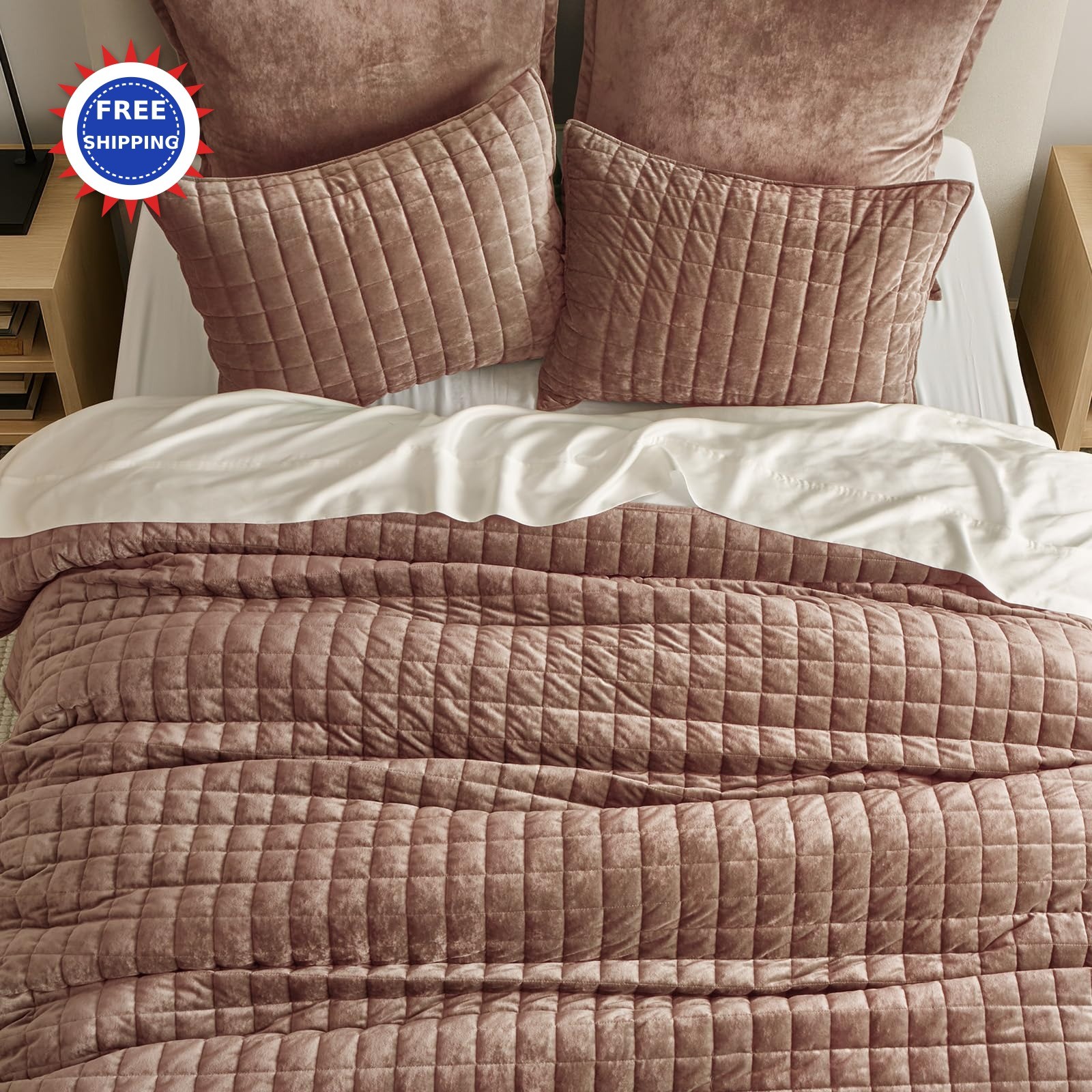 RECYCO Luxury Velvet Quilt King Size Bedding Set Ultra Soft Velvet Comforter