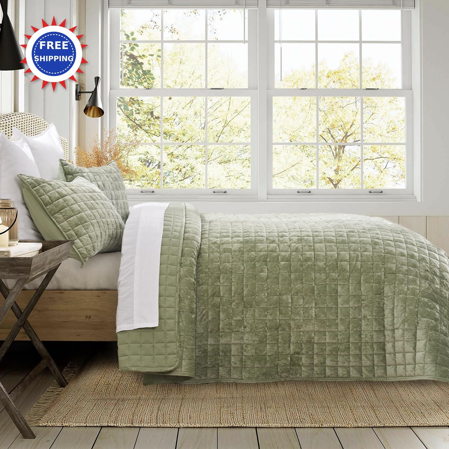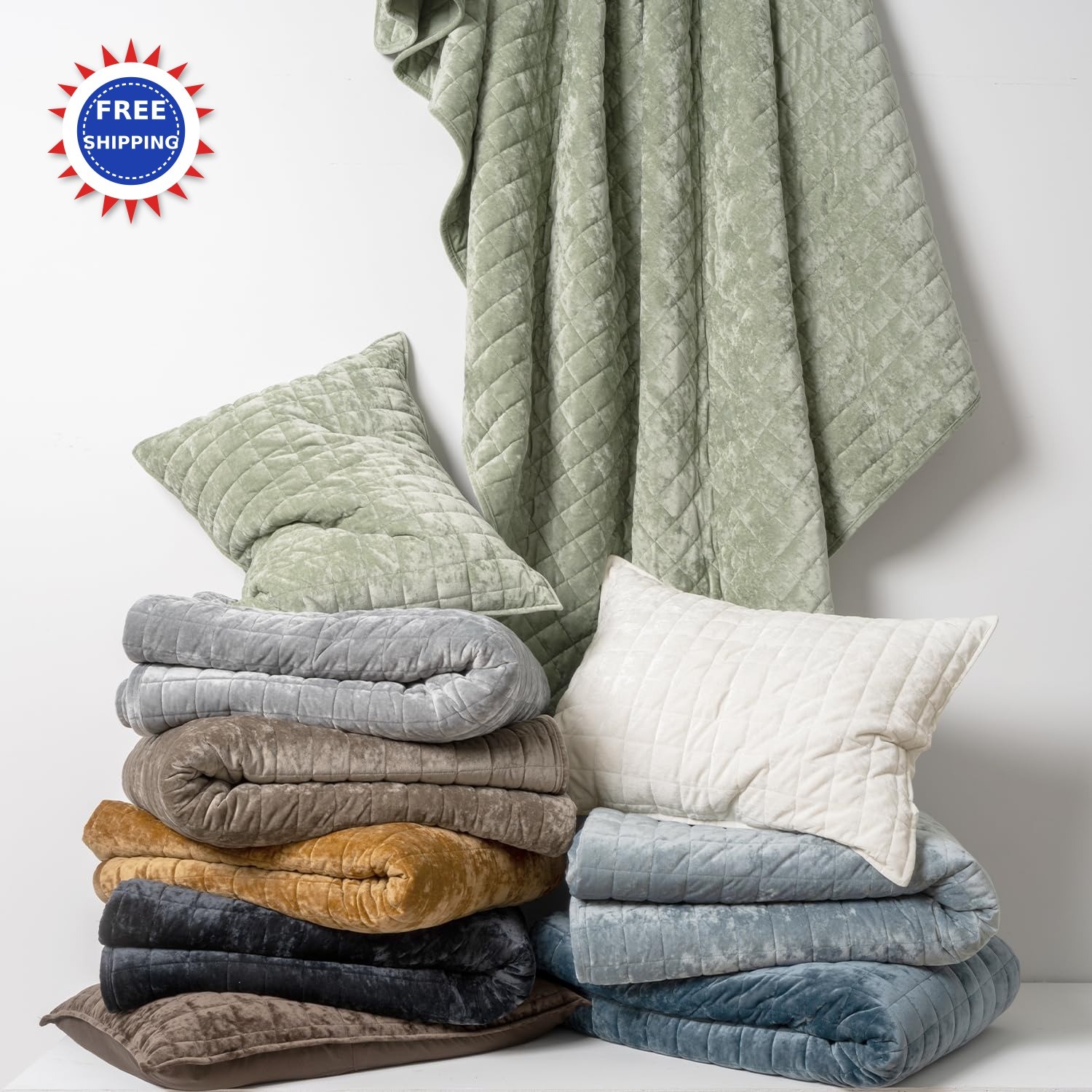 RECYCO Luxury Velvet Quilt Set King Size Bedding Sets Ultra Soft Velvet