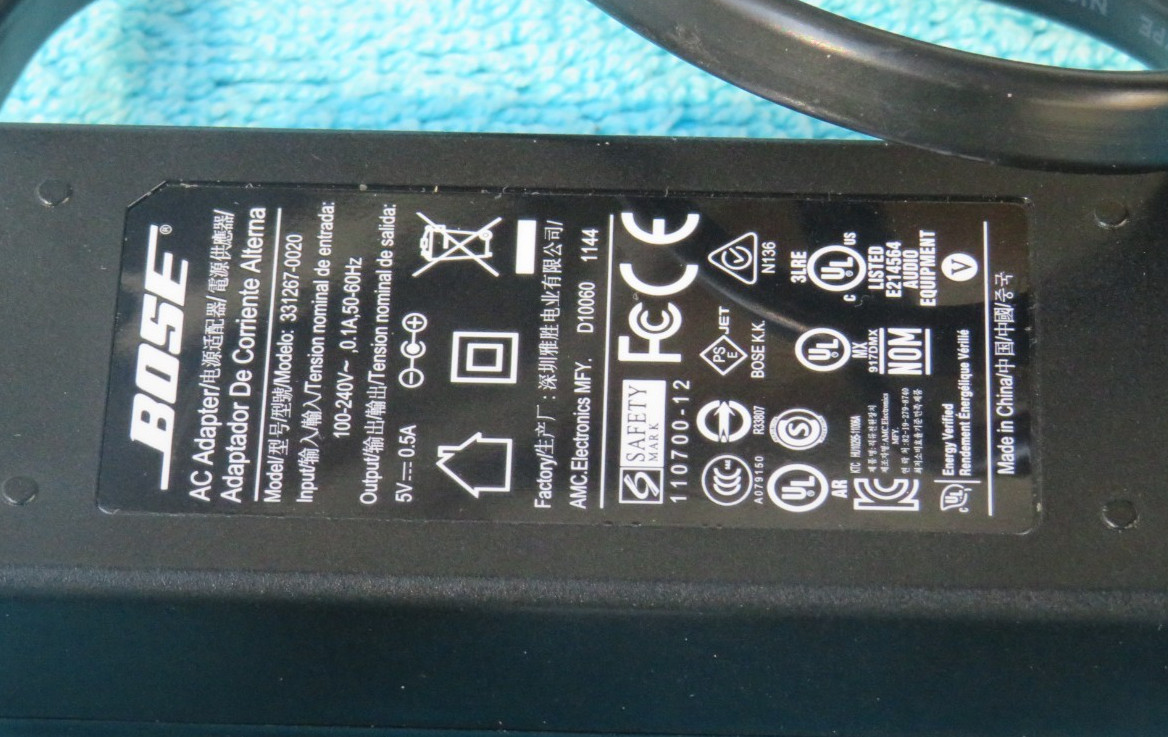 Genuine OEM Bose AC Adapter Model 331267-0020 Input 100-240V, 0.1A Output 5v .5a