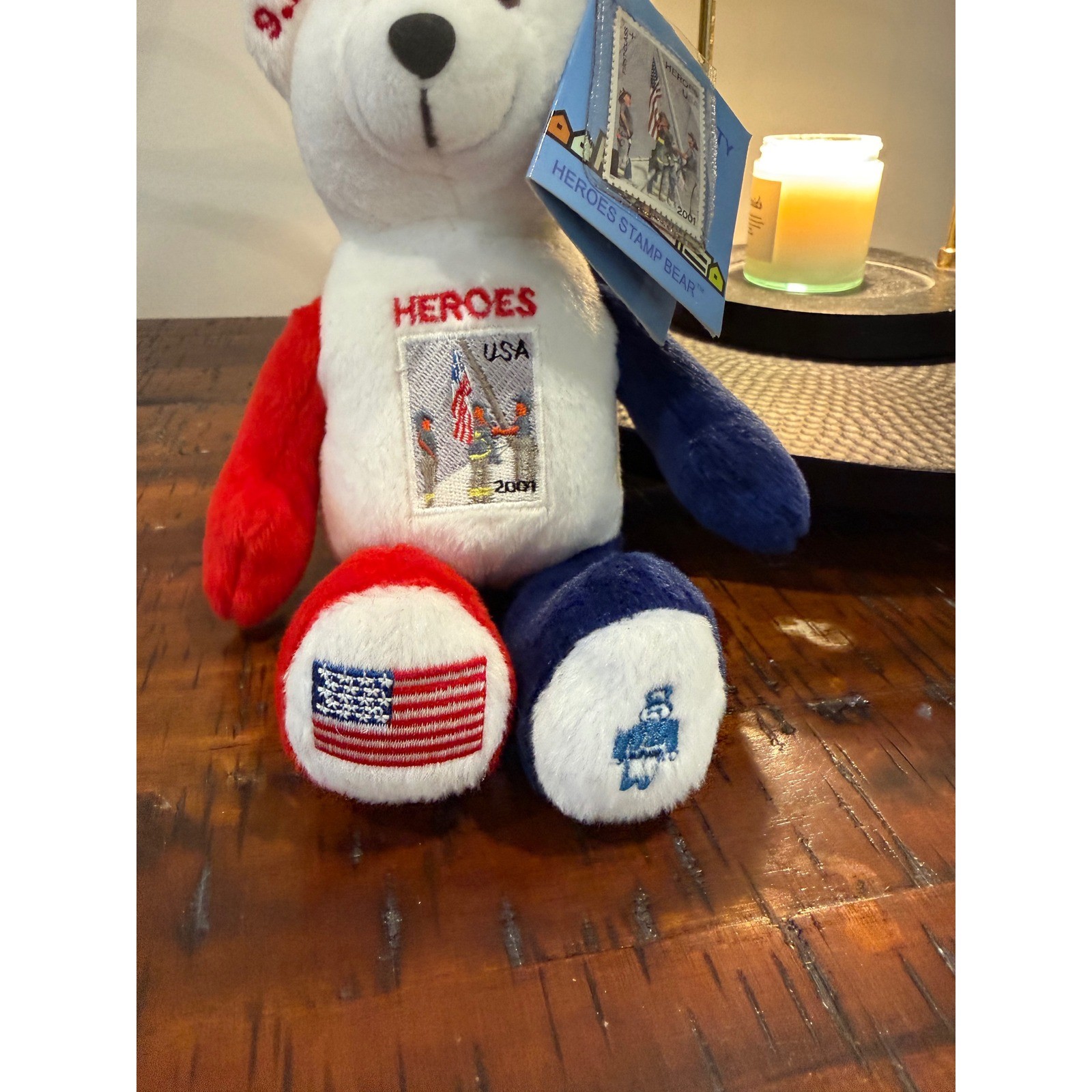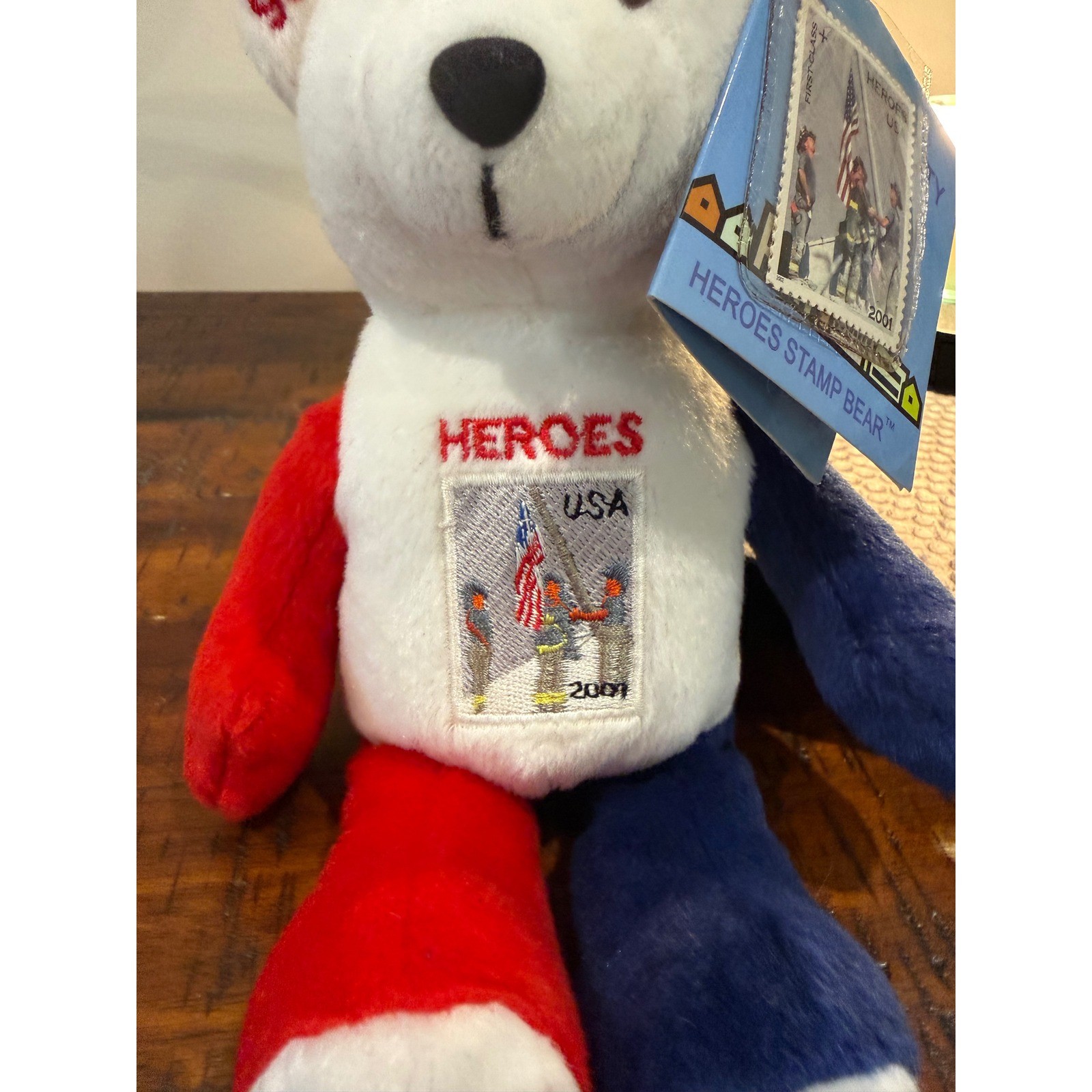 как выглядит Timeless Toys NYC Heroes Stamp Bear 9/11 Memorial USPS 2002 Plush NWT patriotic фото