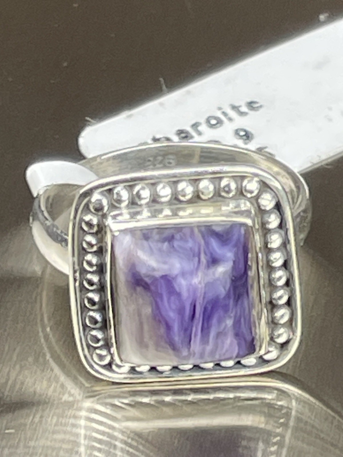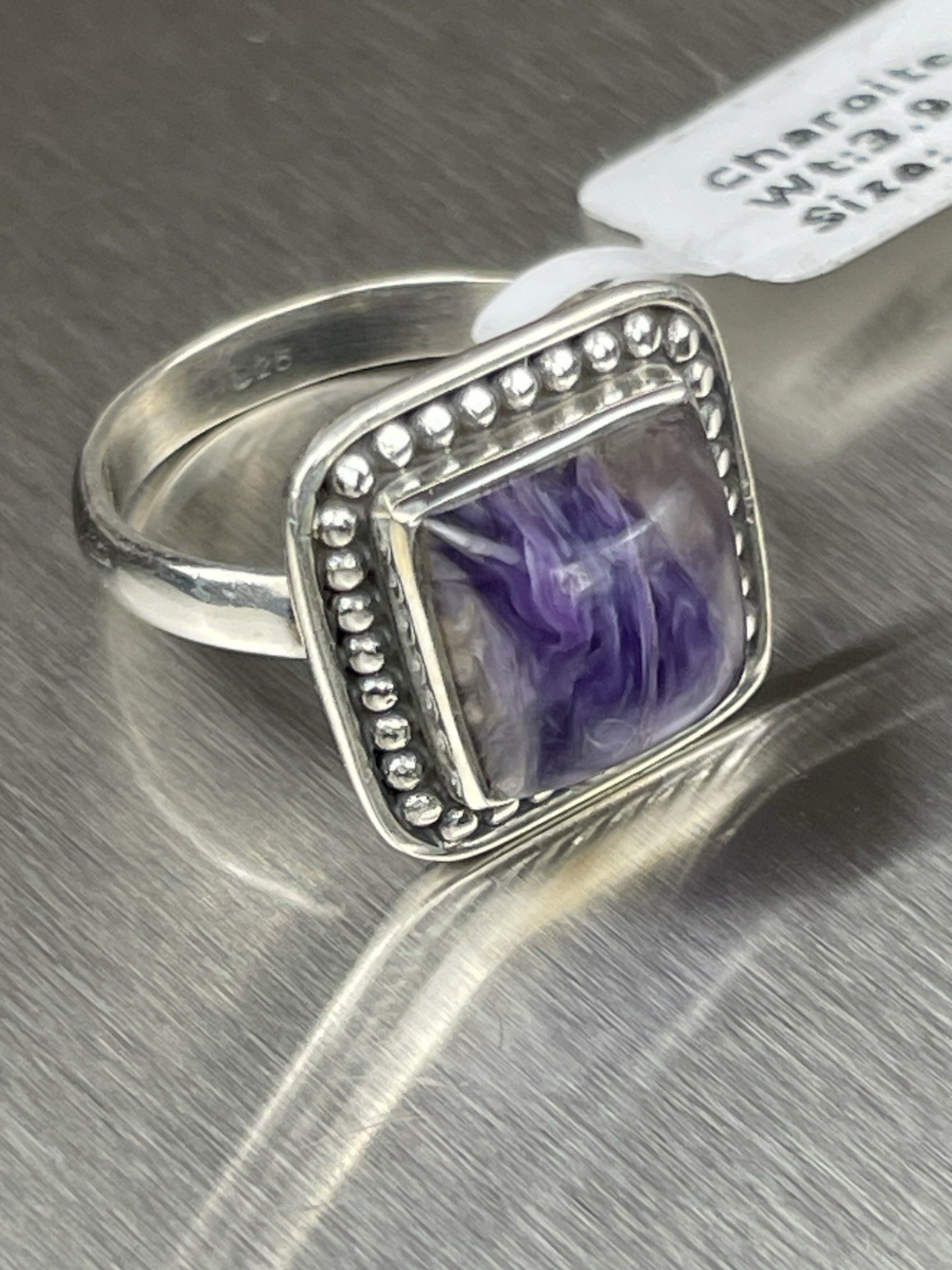 Charoite Sterling Silver Ring Size 5 Square Russian Gemstone