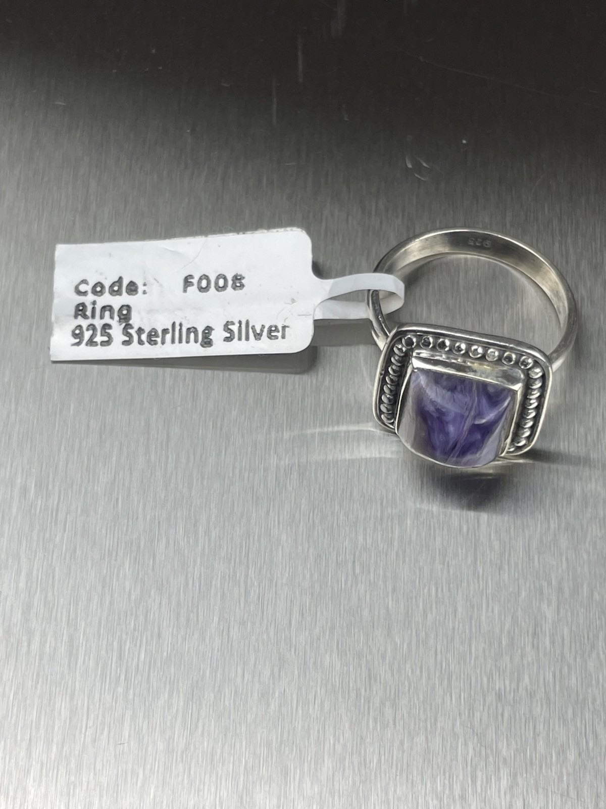 как выглядит Charoite Sterling Silver Ring Size 5 Square Russian Gemstone фото