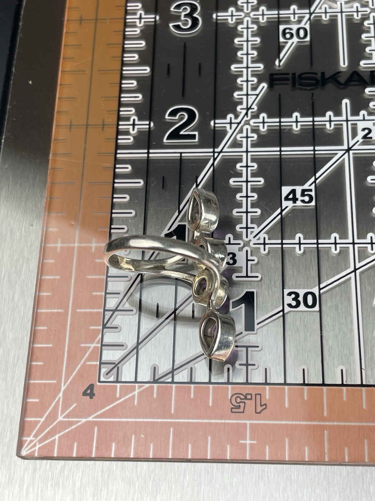 как выглядит Amethyst Silver 925 Ring Statement Offset Teardrop Size 7 Four Stone фото