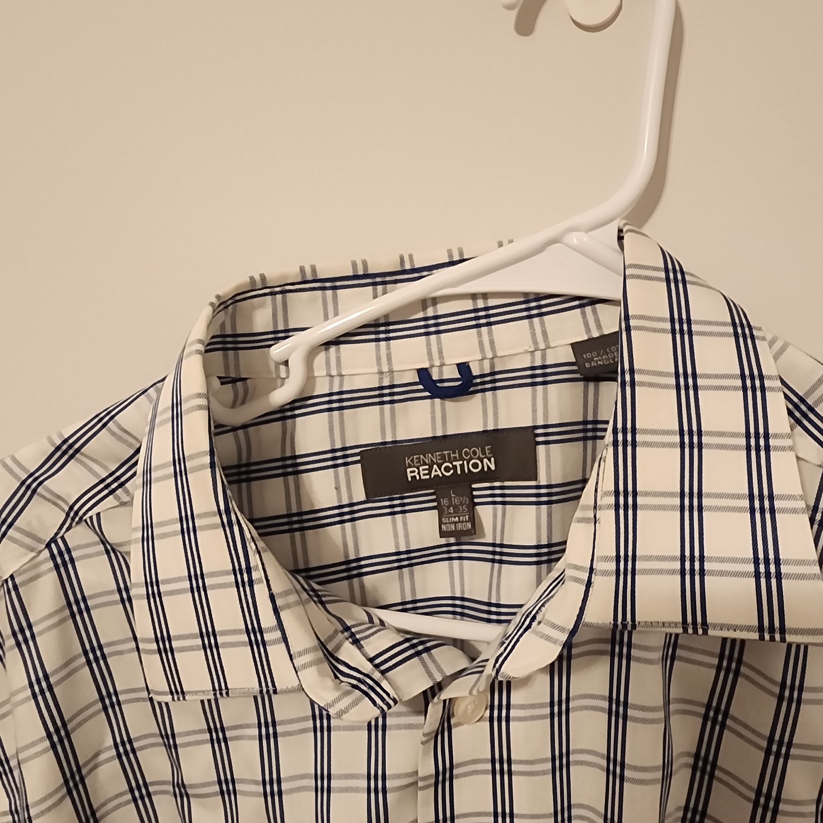 как выглядит Kenneth Cole Reaction Slim Fit Men s Dress Shirt L 16-16.5 34/35 White фото