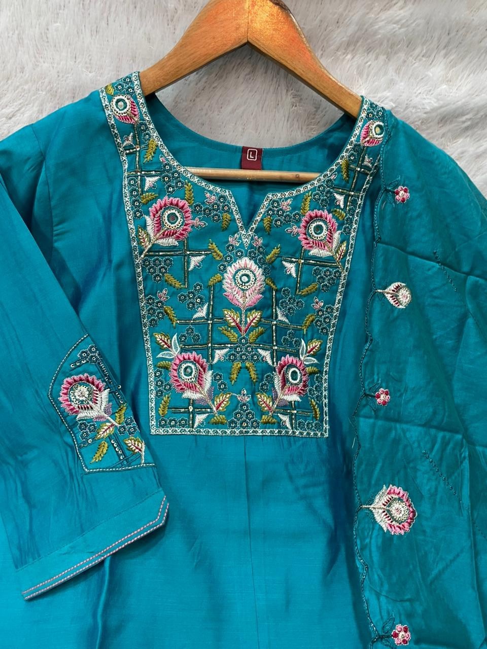 Kurti Work: Multi Embroidery Thread With Real Mirror Hand Work