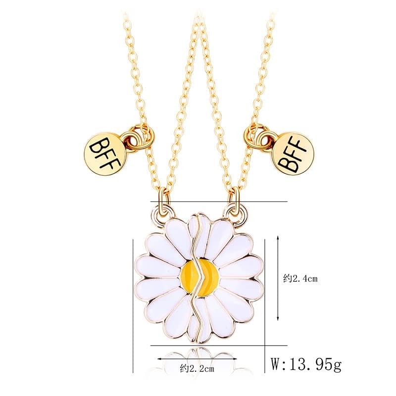 BFF Necklace for 2, Heart Butterfly Daisy Pendant Matching Necklace Gold-Daisy