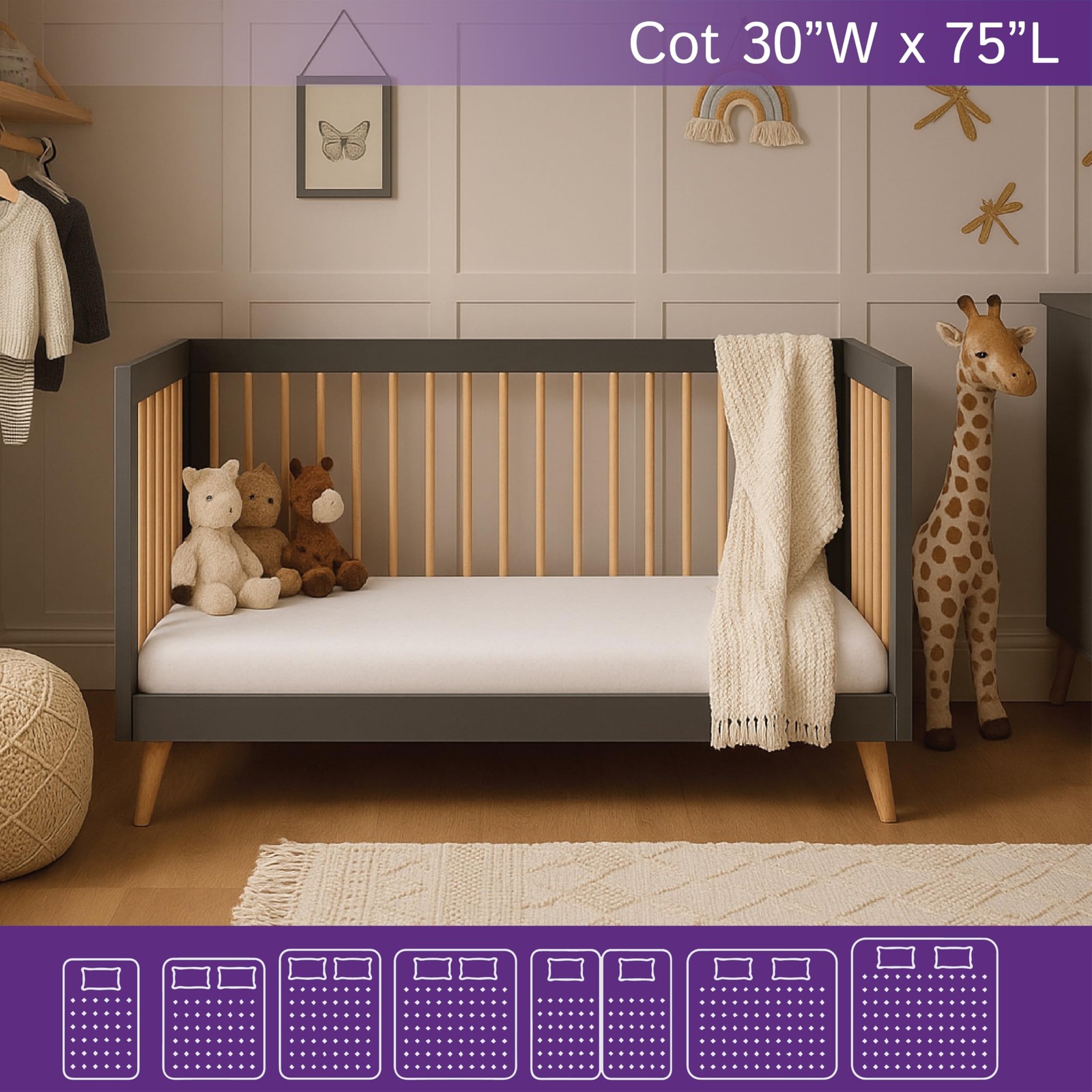 Cot Size Waterproof Mattress Protector 30x75 - Fitted Sheet Style, Hypoallerge