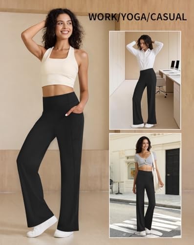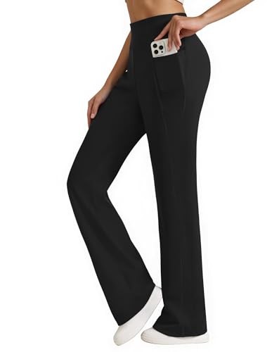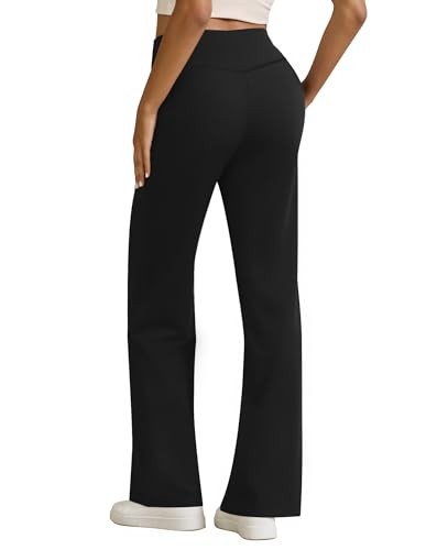 Womens High Waist Yoga Pants Stretchy Casual Trousers Straight Leg Large Black