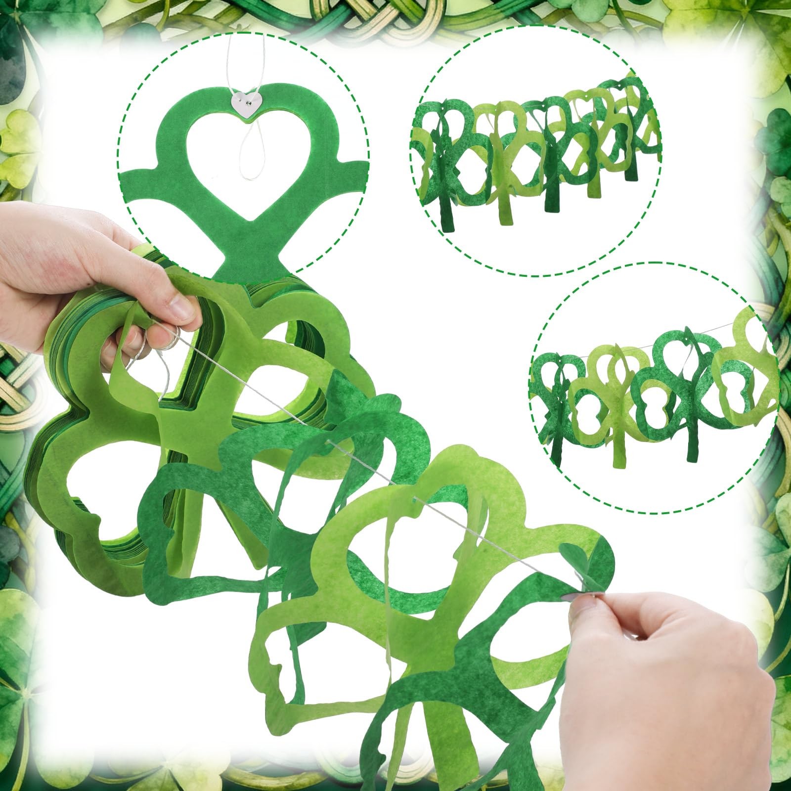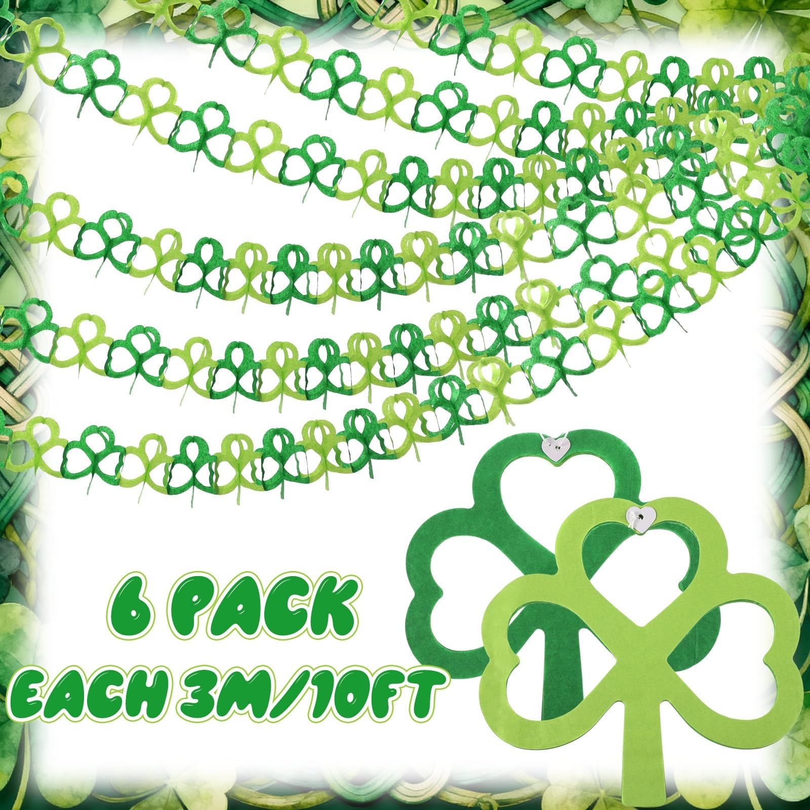 6 Pcs St. Patrick's Day Decorations Shamrock Garlands Banners 60 ft Clover Paper