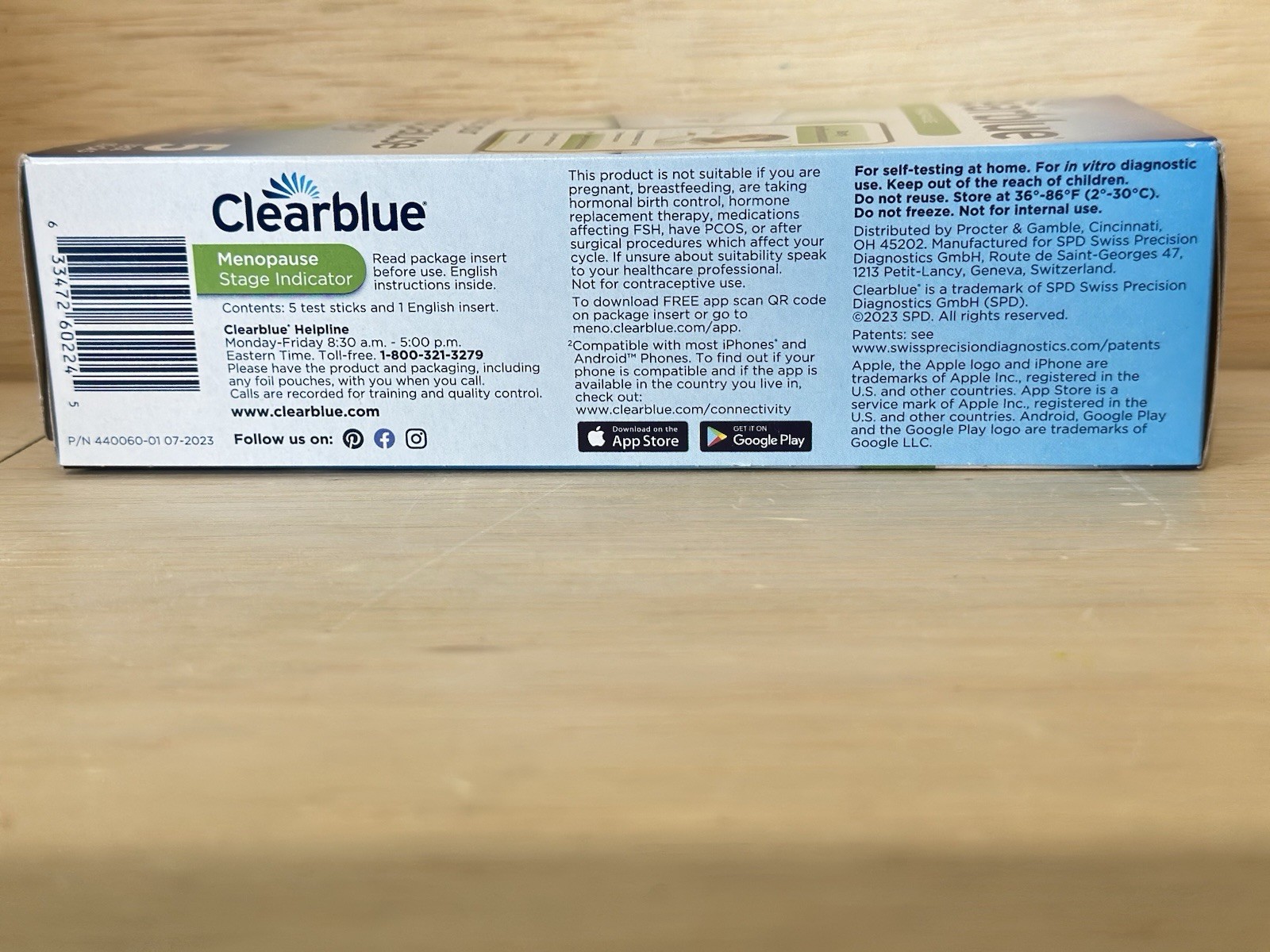 Clearblue Menopause Stage Indicator - 5 Test Sticks Exp 06/26