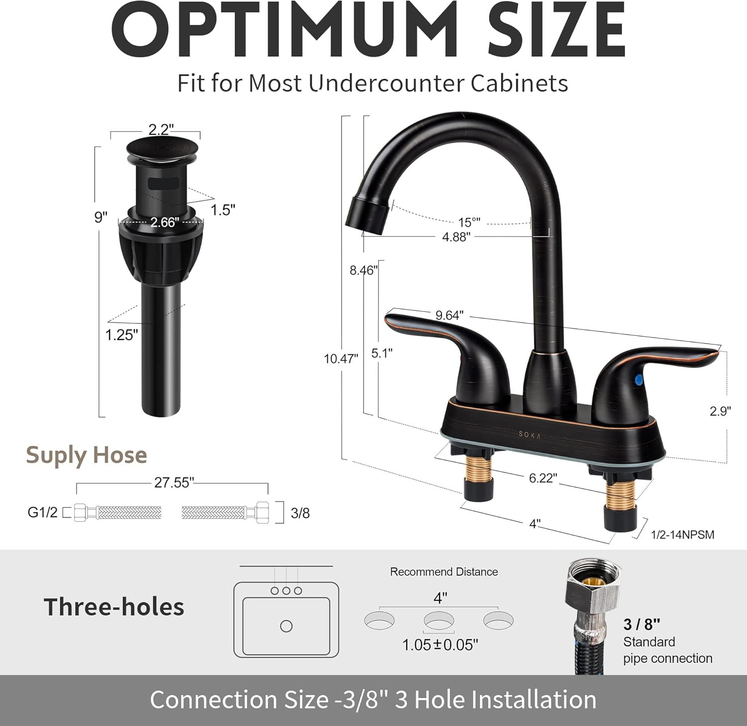 Stainless Steel Bathroom Faucet Oil-Rubbed Bronze Bathroom Sink Faucet with Pop-