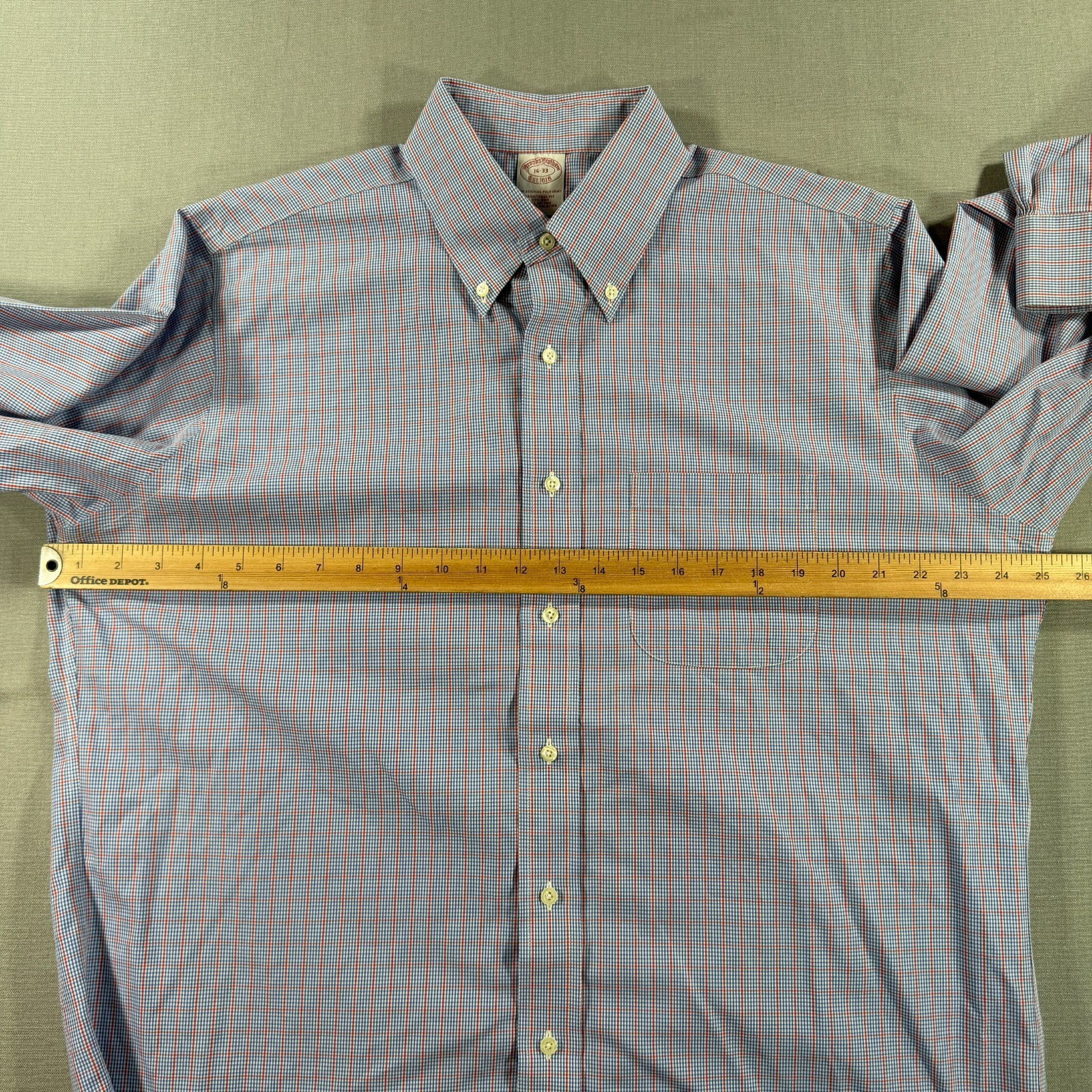 как выглядит Brooks Brothers 1818 Non Iron Dress Shirt Mens 16 33 Blue Check Long Sleeve фото