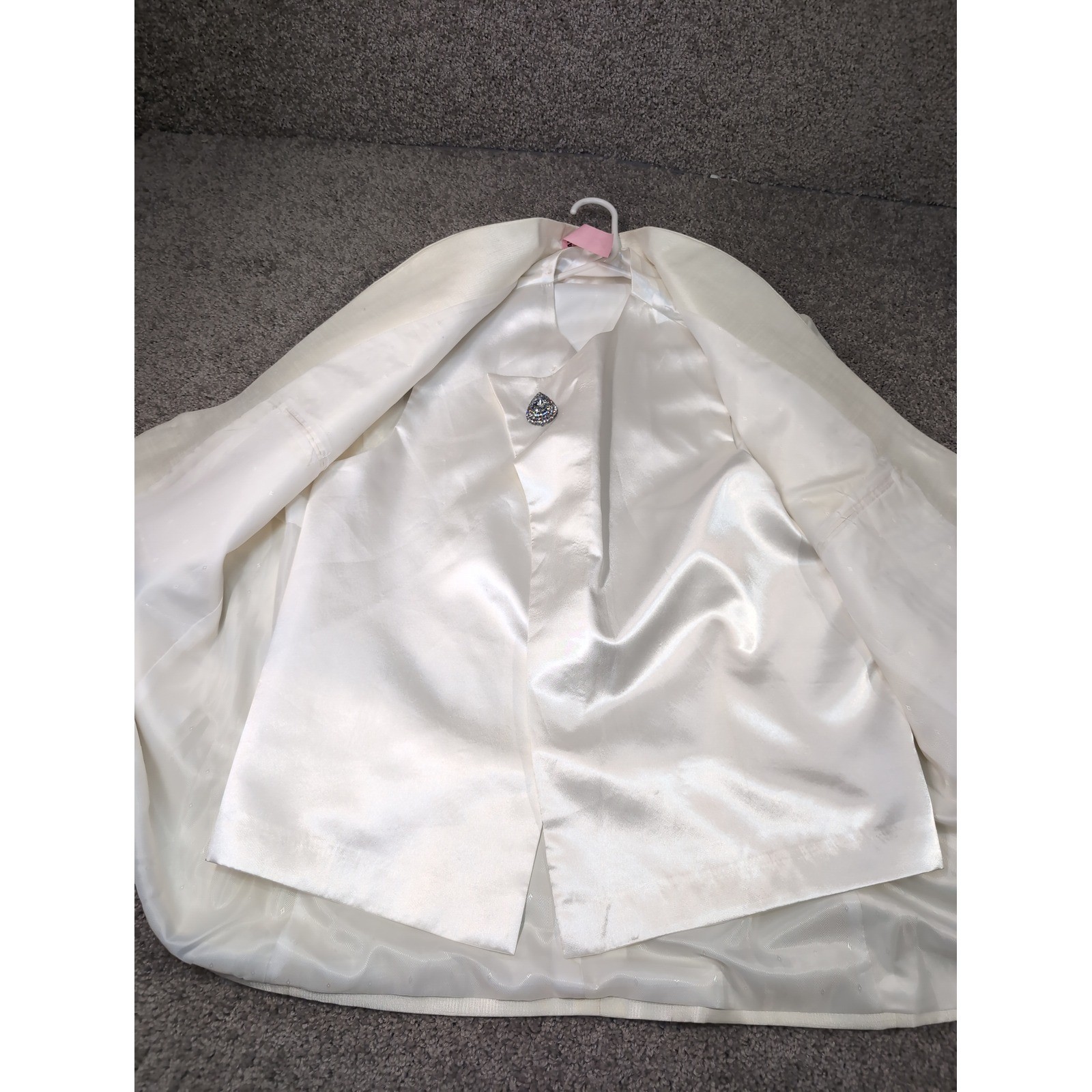 Womens Ivory White Mandarin Collar Tuxedo Blazer Rhinestone Buttons Vest