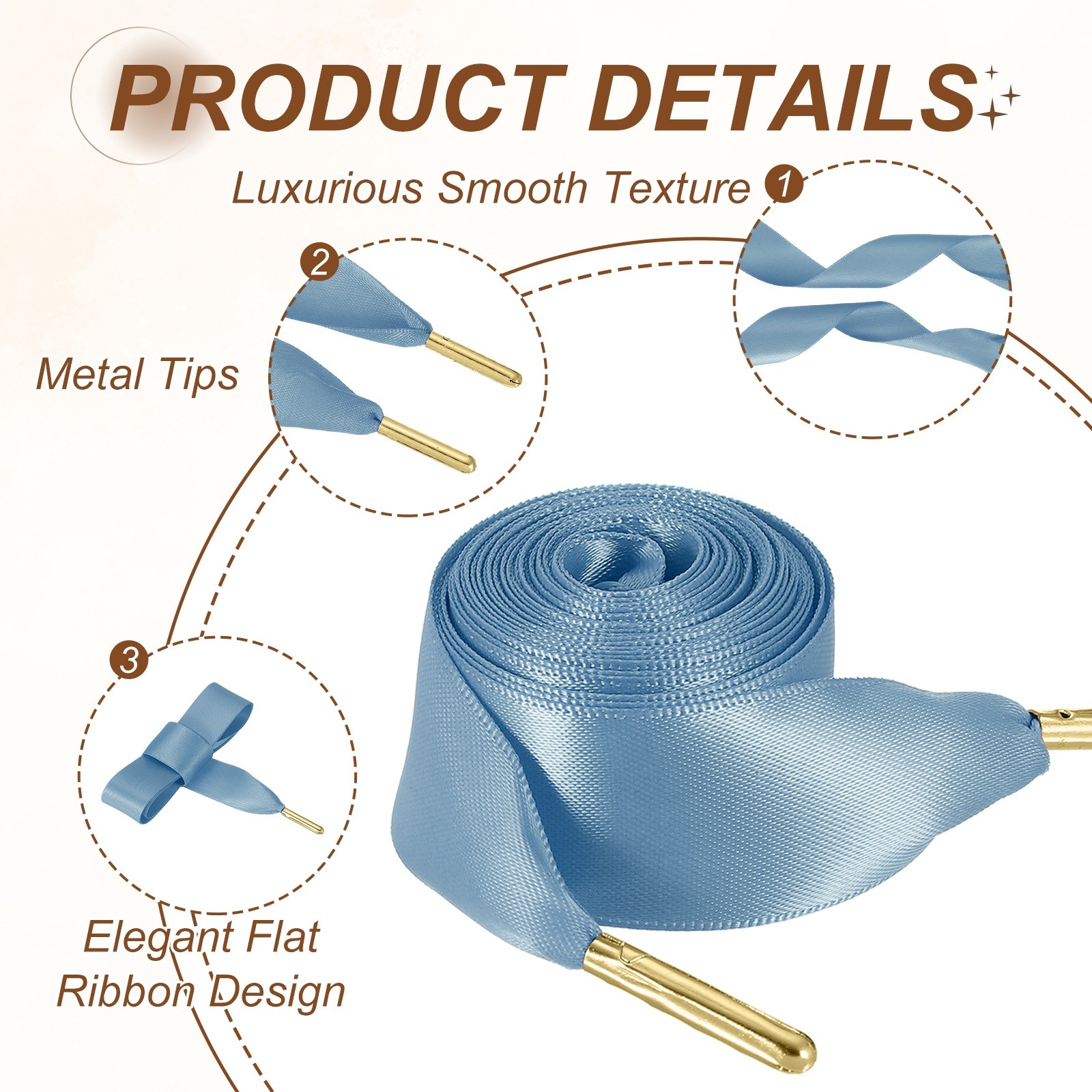 2Pair Satin Ribbon Shoelaces, 2cm Ribbon Shoe Laces 150cm Long Light Blue