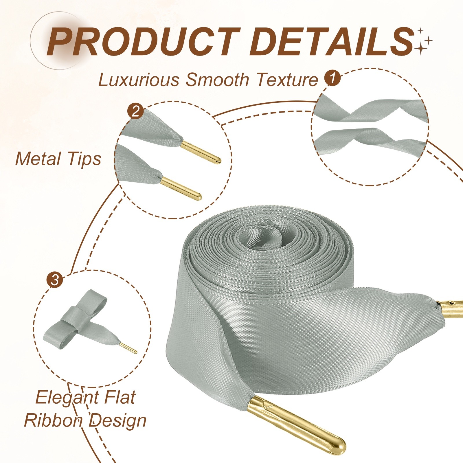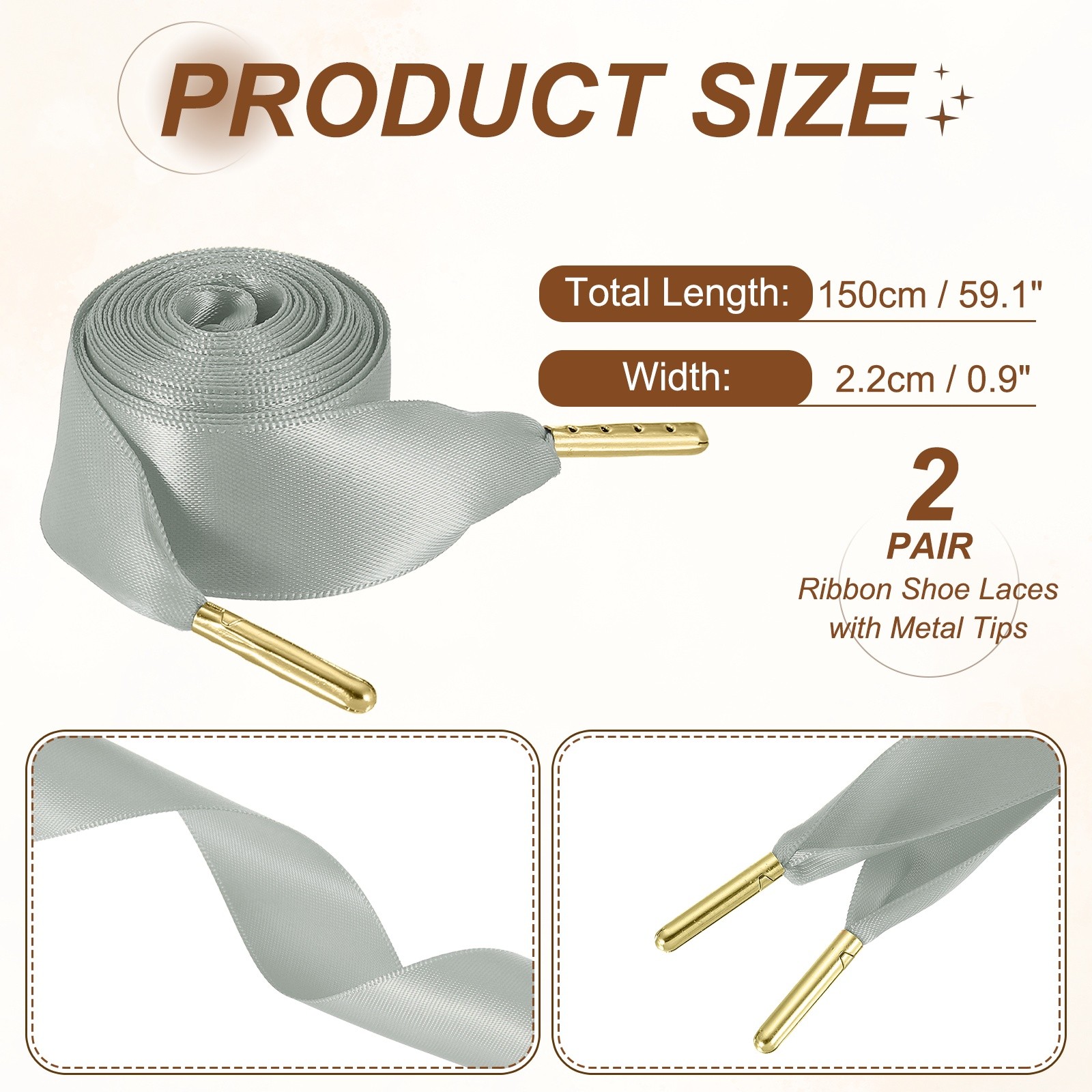 2Pair Satin Ribbon Shoelaces, 2cm Ribbon Shoe Laces 150cm Long Light Gray