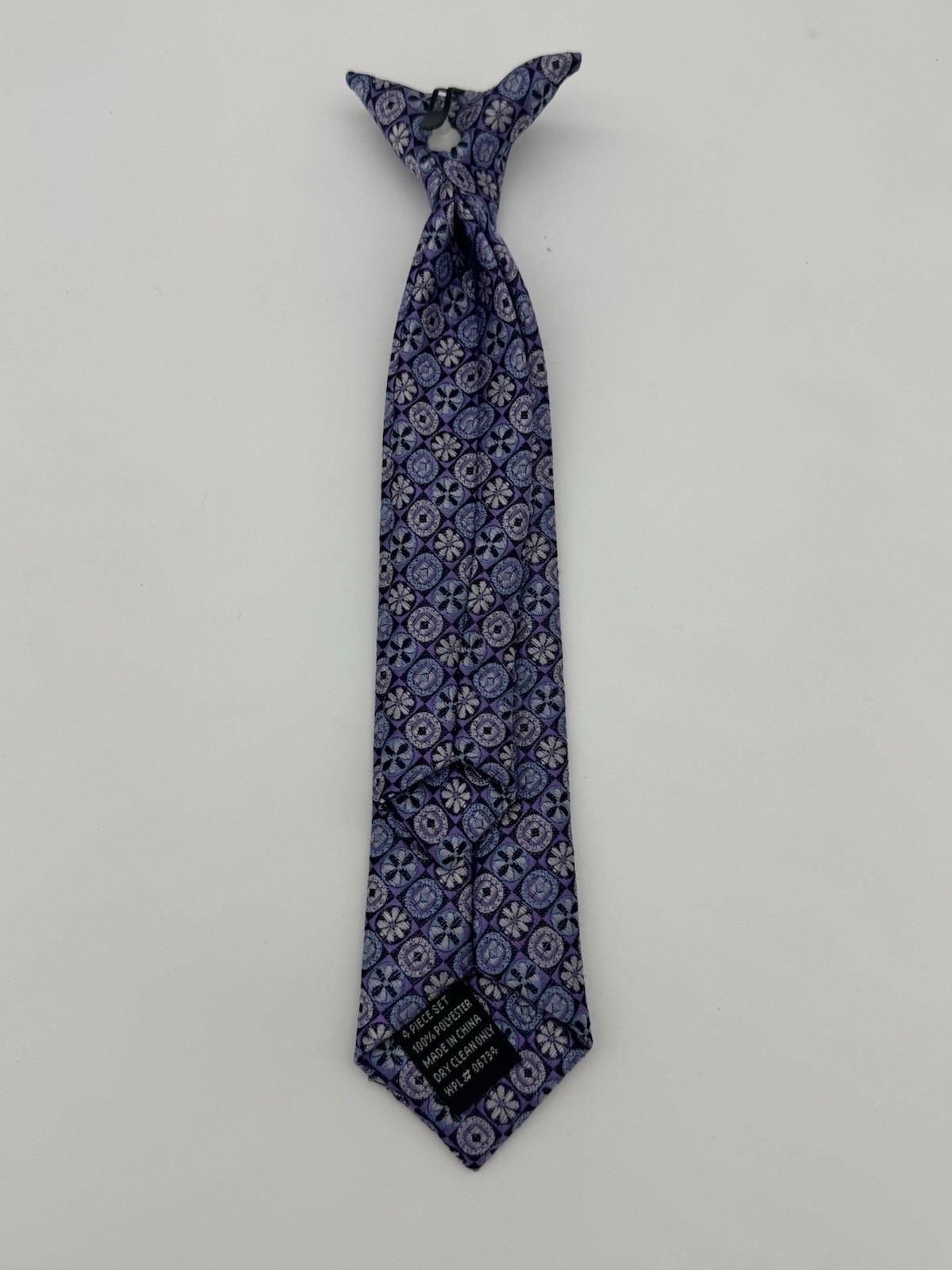 Boys Geometric Elegant Blue Purple Floral Striped clip on neck tie Spring