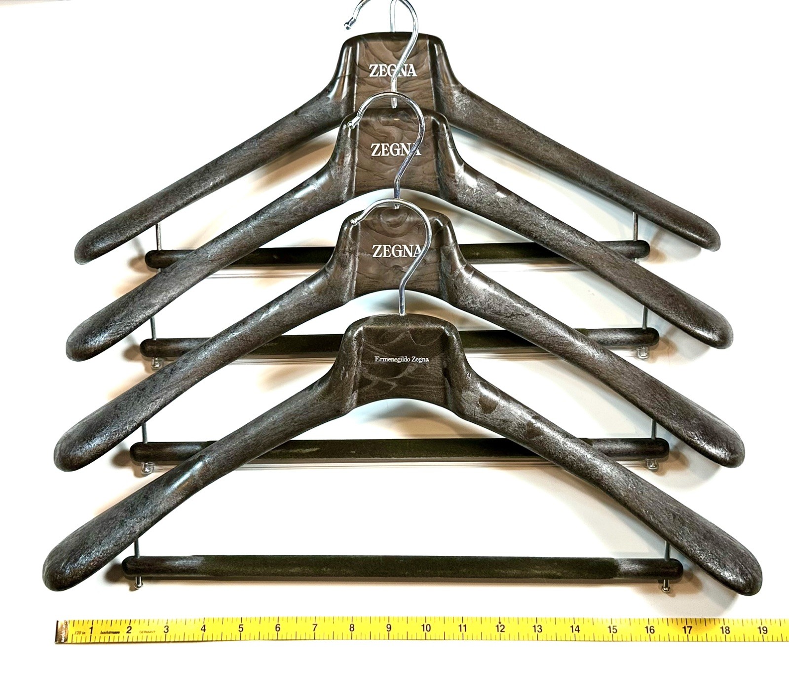 ZEGNA Set of 4 Heavy Duty 48cm/19 Brown Resin Faux Wood Suit Hangers NEW