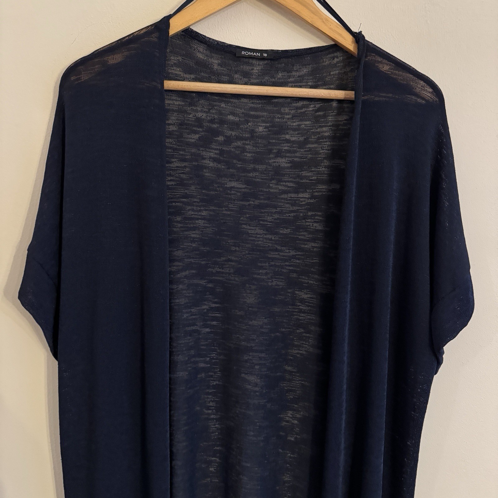 как выглядит BNWT ROMAN Dark Navy Blue SIZE 10 UK Short Sleeve Open Lightweight Cardigan SP3 фото