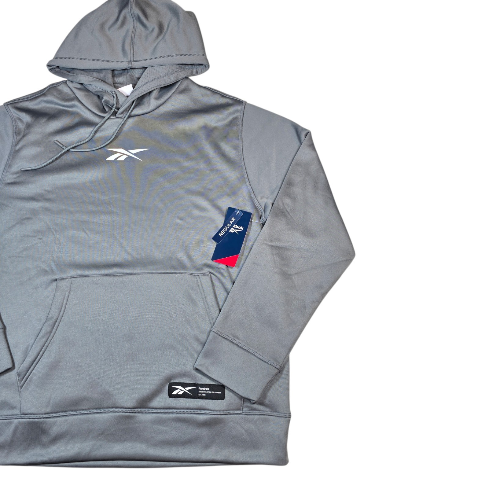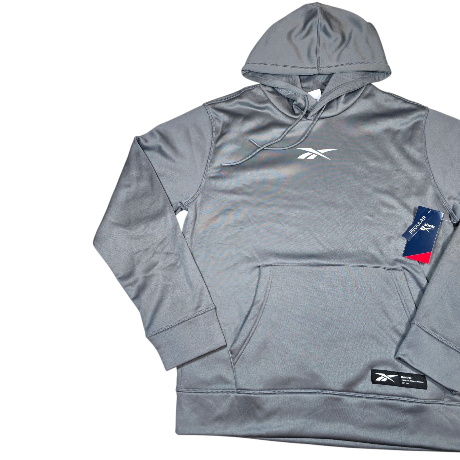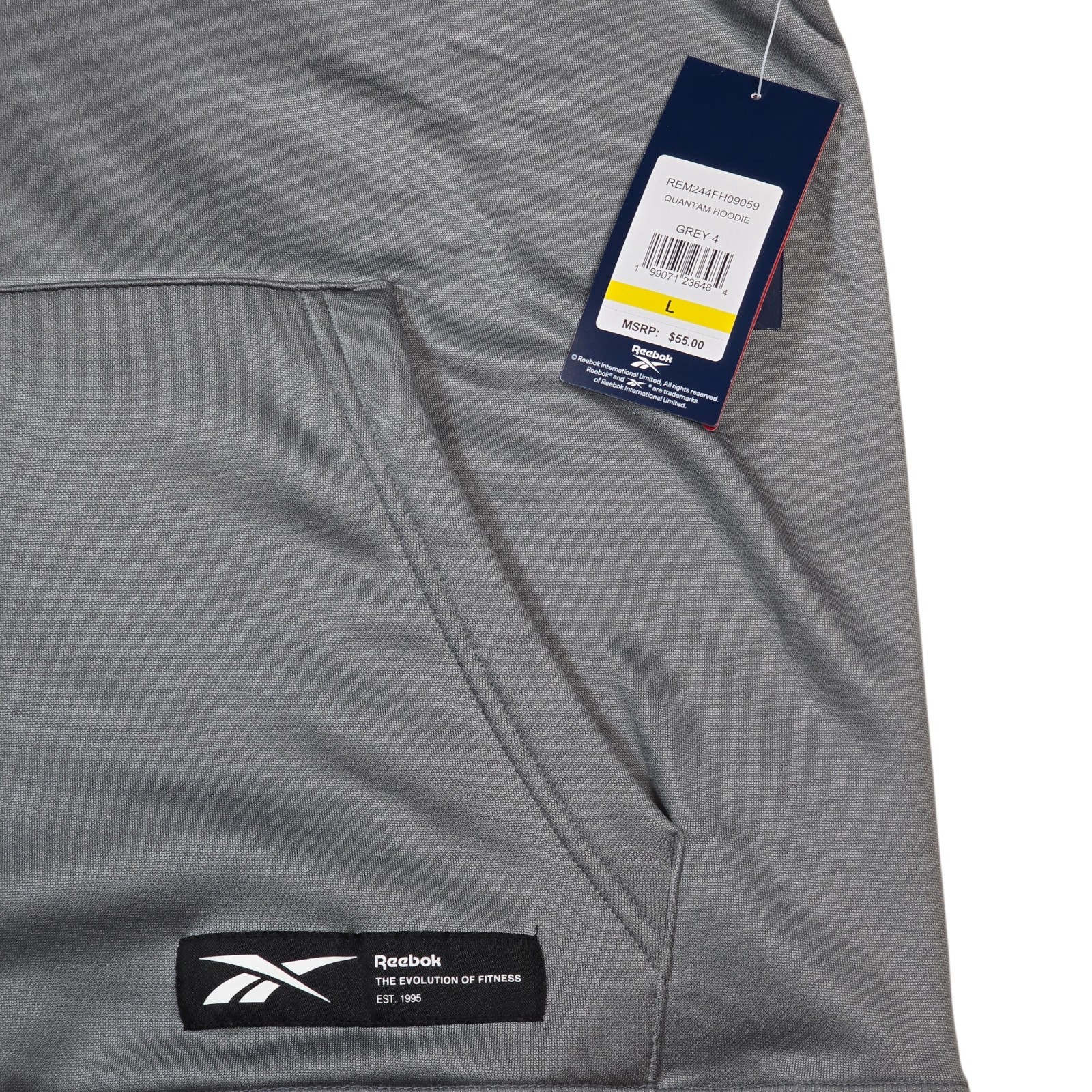 NWT Reebok Men s Quantum Fleece Grey Pullover Hoodie, Regular Fit Sz L, 55 MSRP