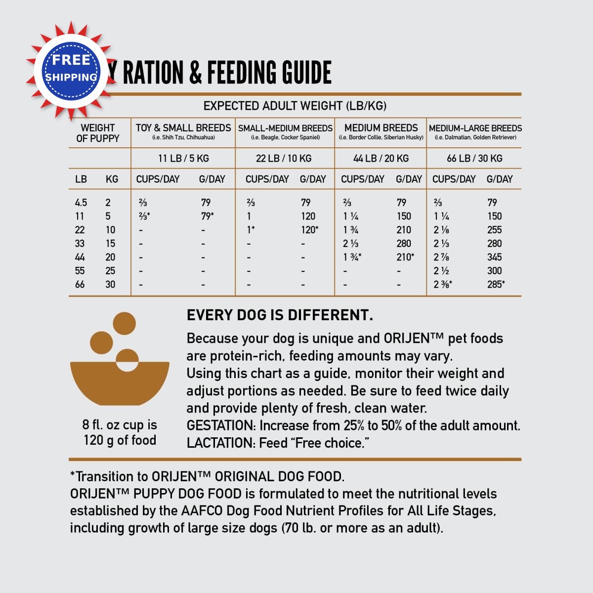 Puppy Recipe Grain Free Dry Dog Food ORIJEN 23.5lb Bag High Protein powder shake