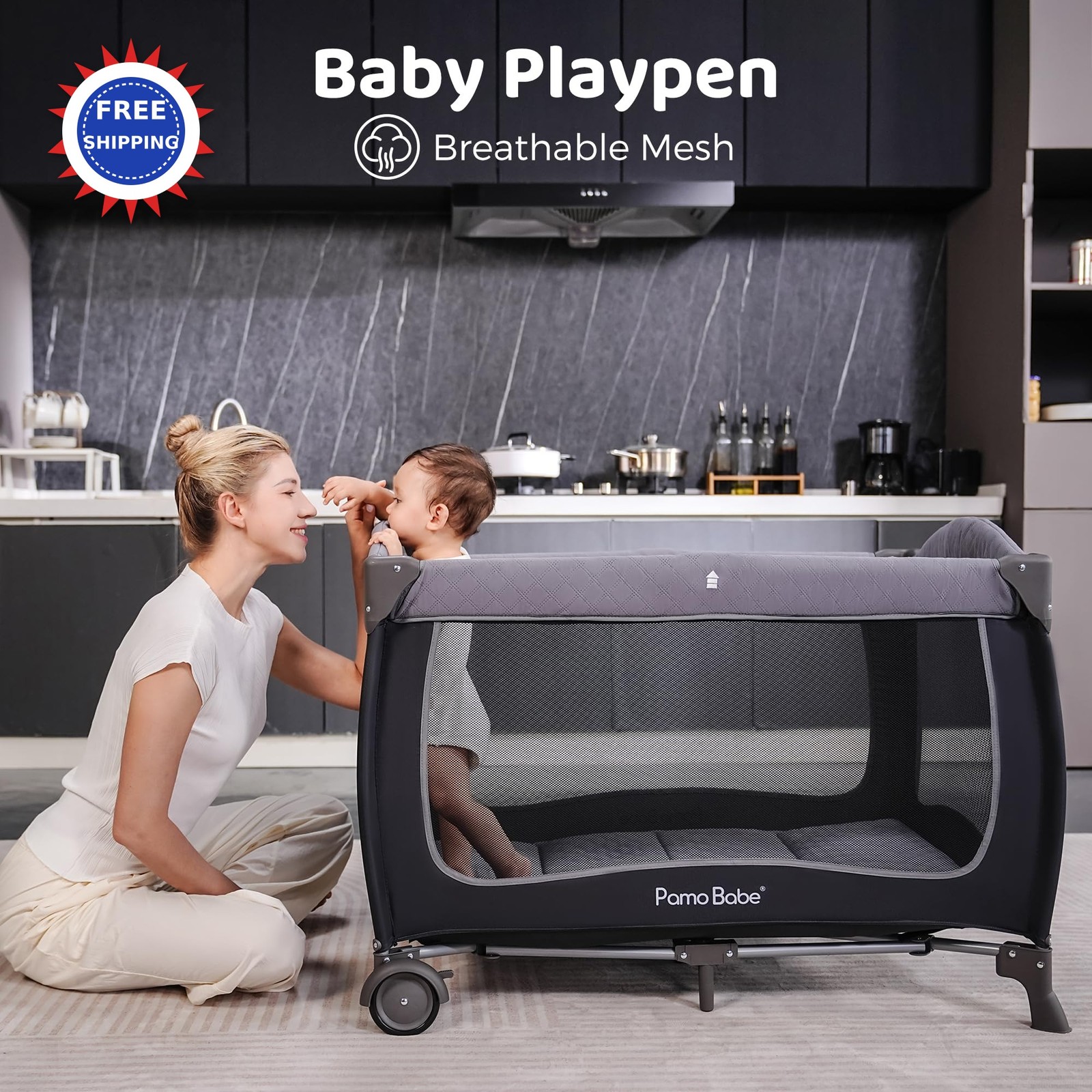 Baby Playard with Canopy Portable Crib Changing Table Pamo Babe infant toddler