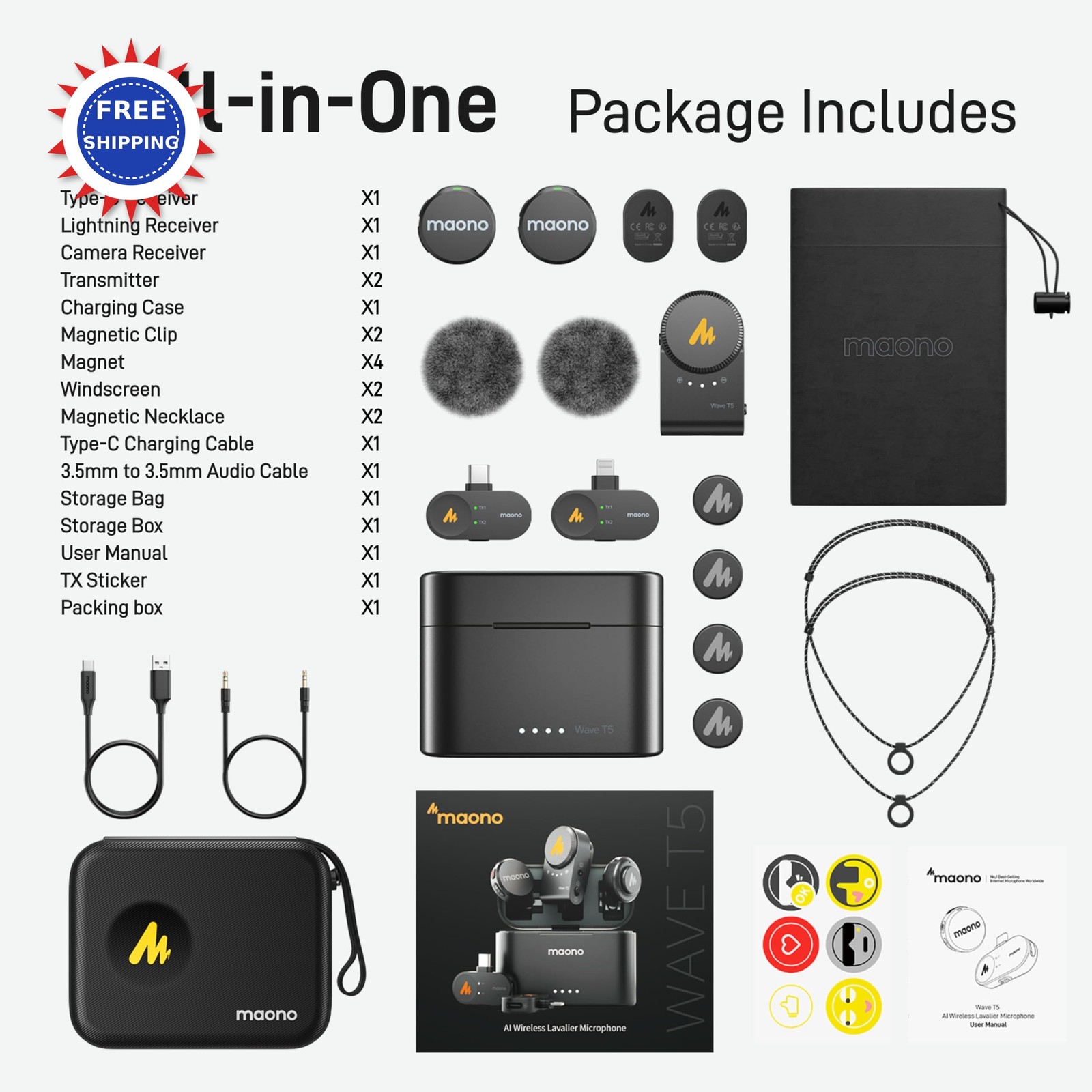 Wireless Lavalier Microphone for iPhone Android Camera PC MAONO Mini Lapel Mic