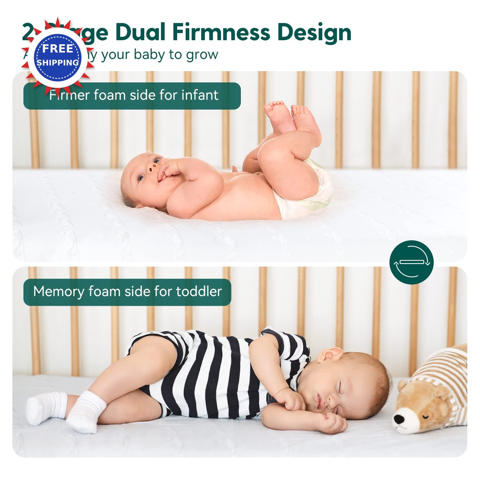 Breathable Crib Mattress Dual Sided Memory Foam Waterproof Removable Washable