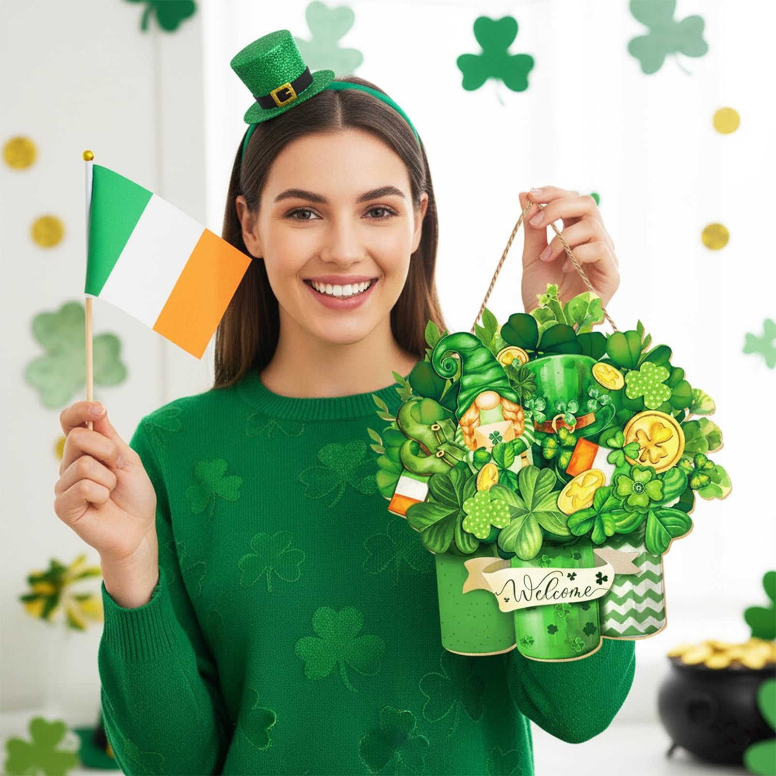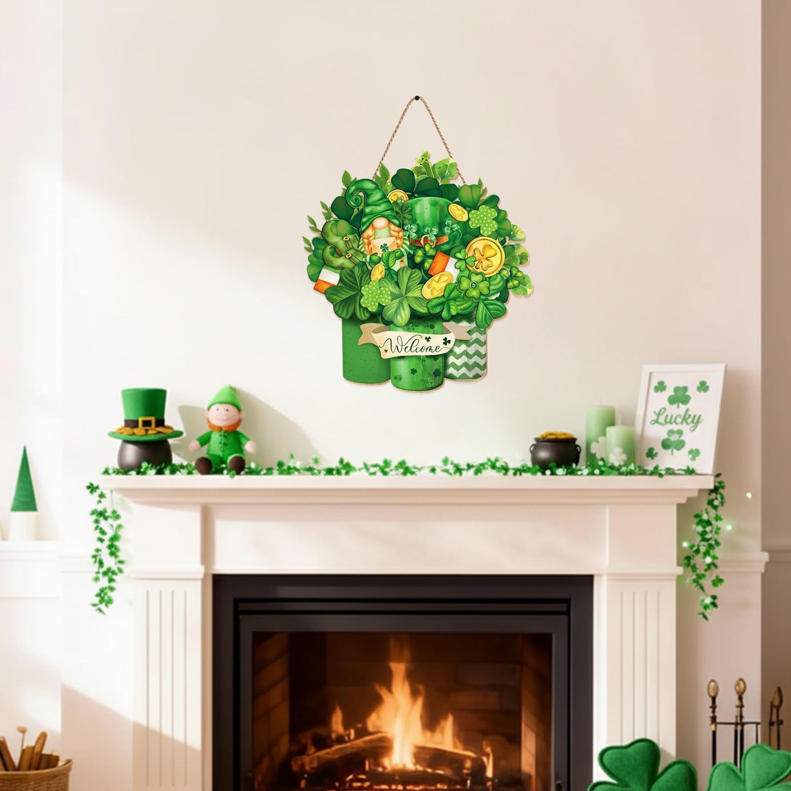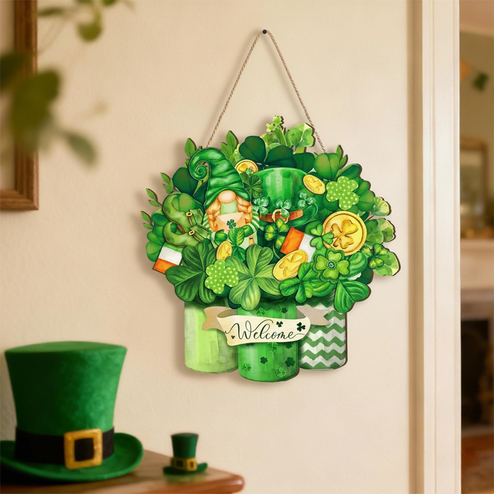 Welcome St Patricks Day Door Hanger Shamrock Wreath for Front Door Sign Wall Dec