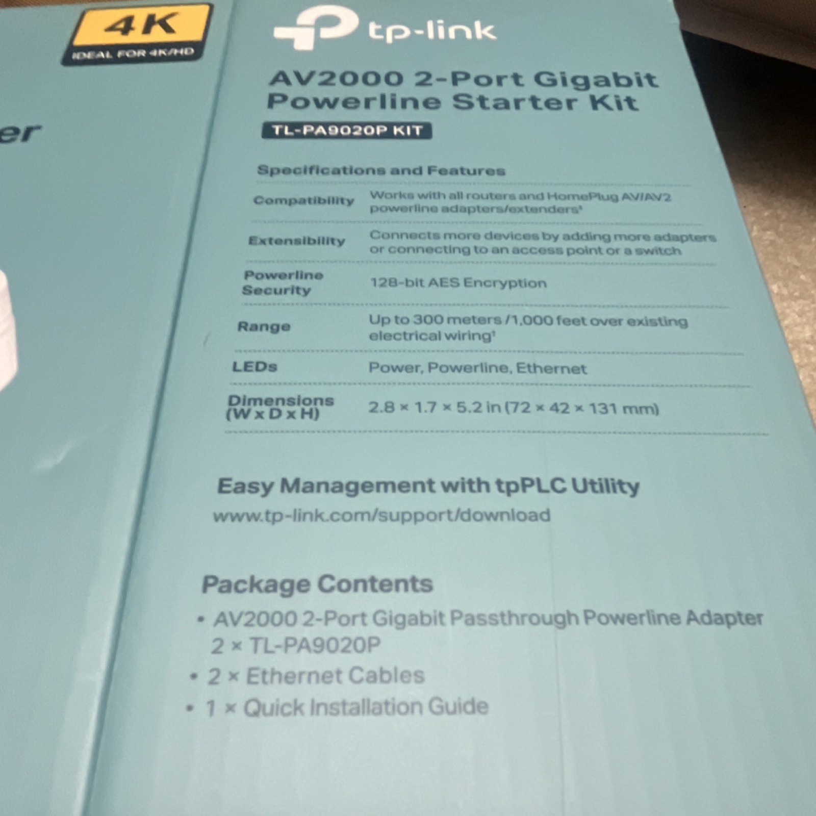 TP-Link AV2000 TL-PA9020P KIT 2-Port Gigabit Powerline Starter Kit 2000Mbps MIMO