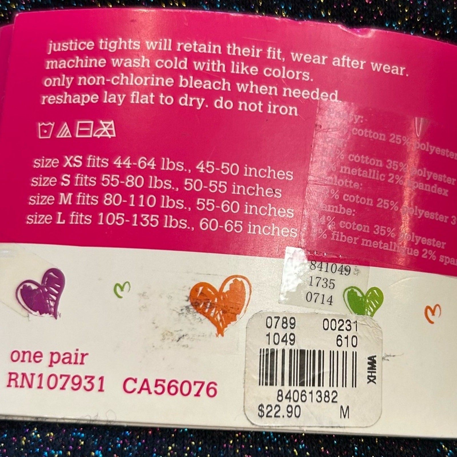 как выглядит NWT Justice Black Rainbow Glitter Footed Tights Size Kids/Youth Medium фото