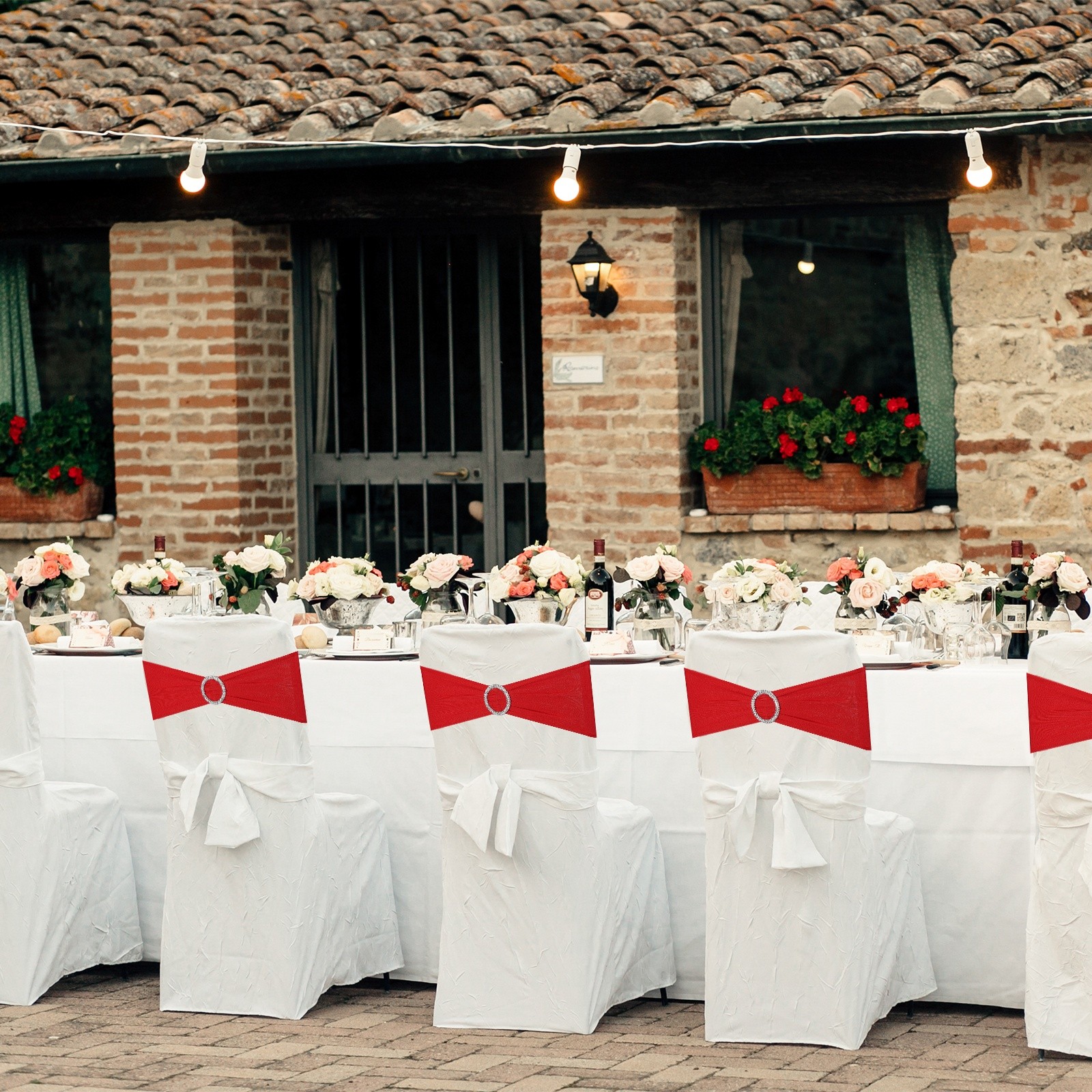 как выглядит 10 Pack Chair Sashes, Stretch Chair Cover Band Bows Cover Band, Brick Red фото