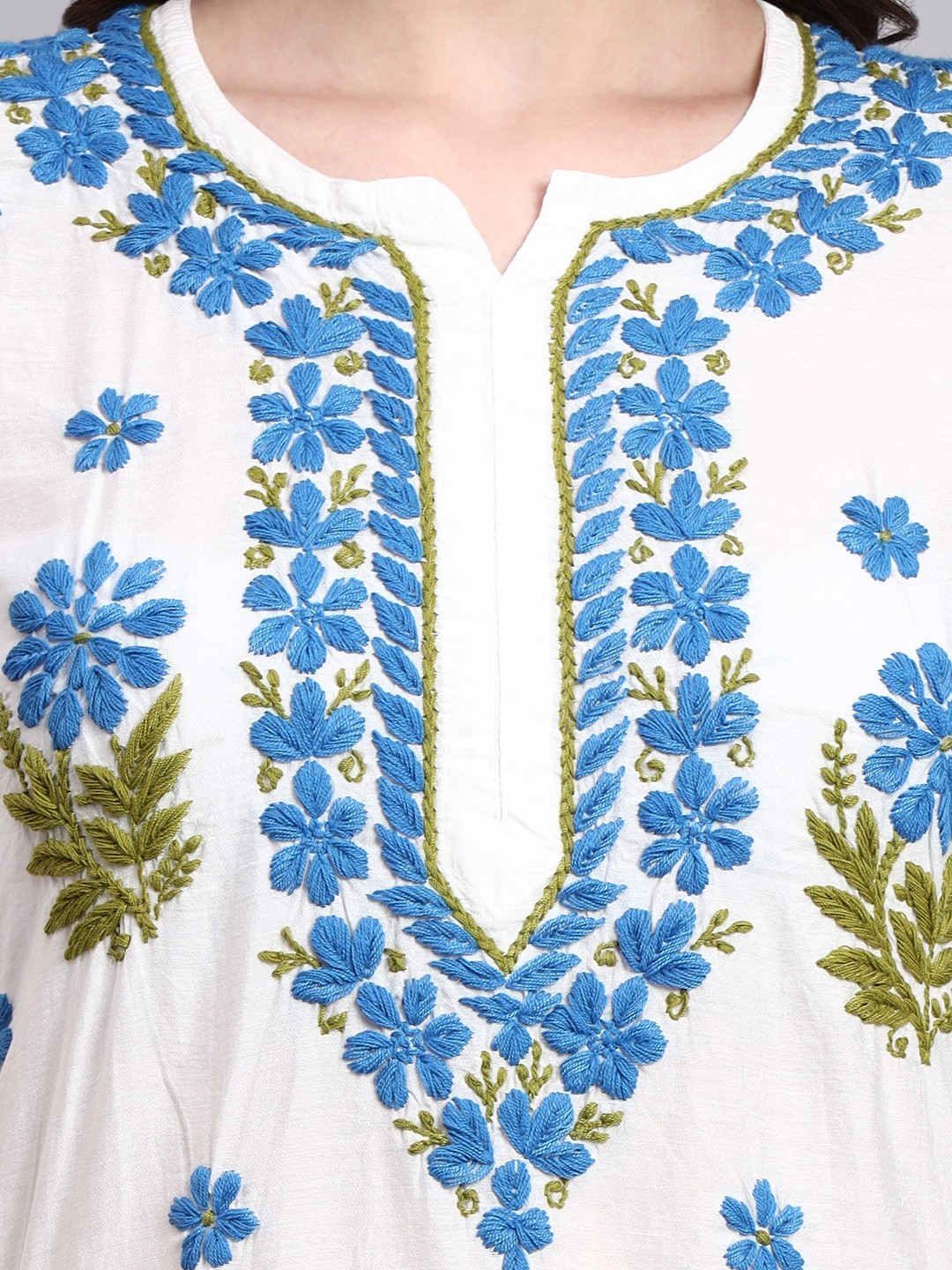 как выглядит Women White Chanderi Kurti with Chikankari Embroidery фото