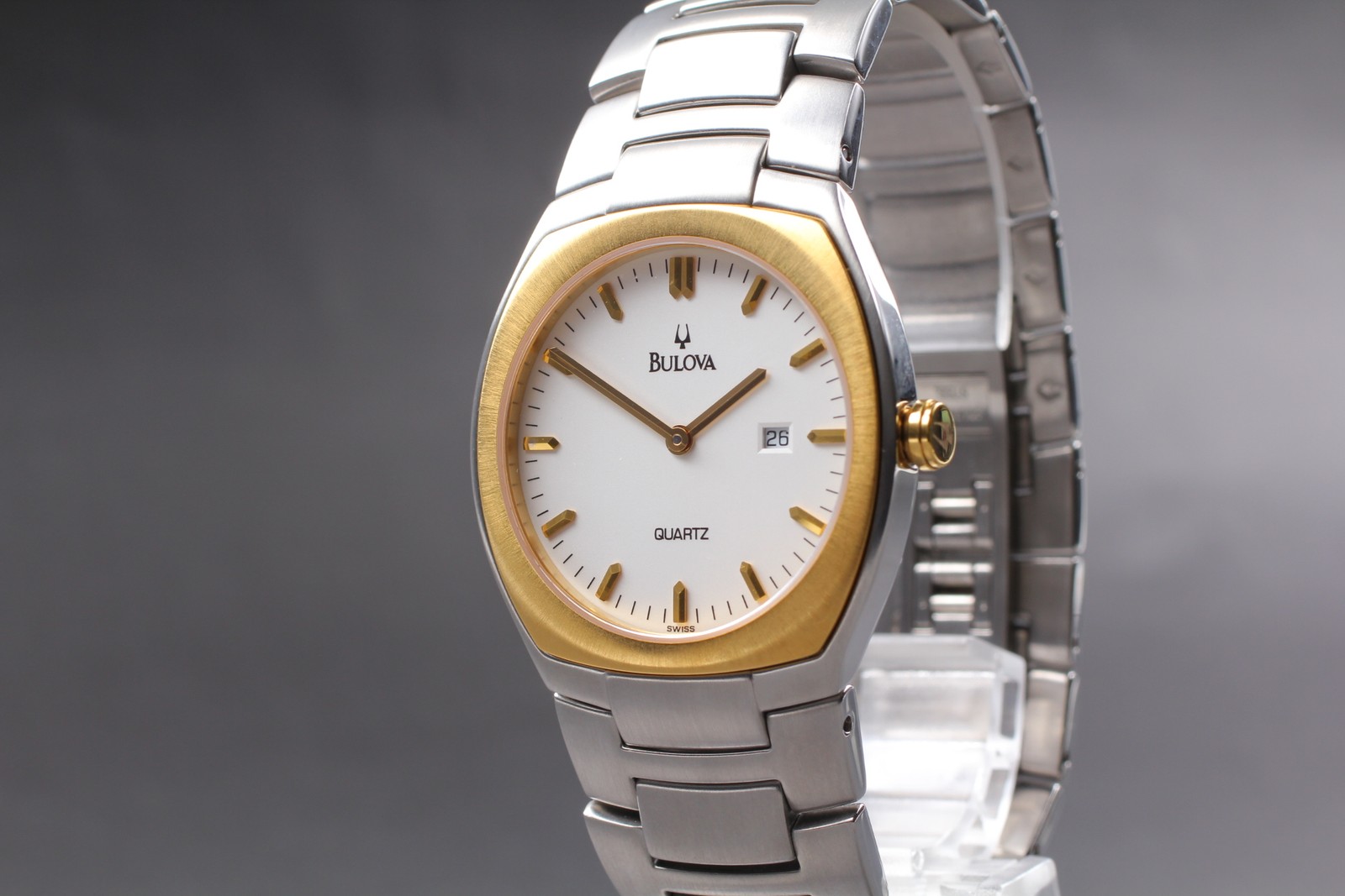 как выглядит MINT Bulova 45951 Two Tone White Dial 30mm Men