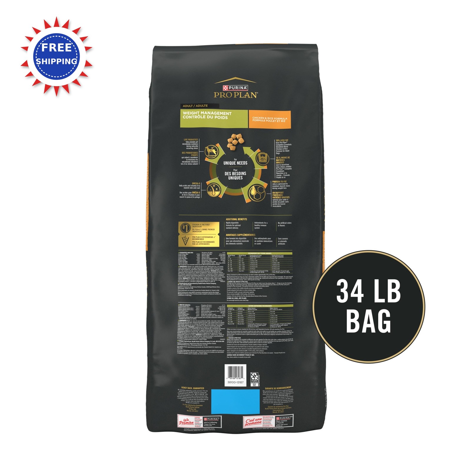 Dog Food Purina Pro Plan Weight Management Chicken Rice 34 lb Formula treats