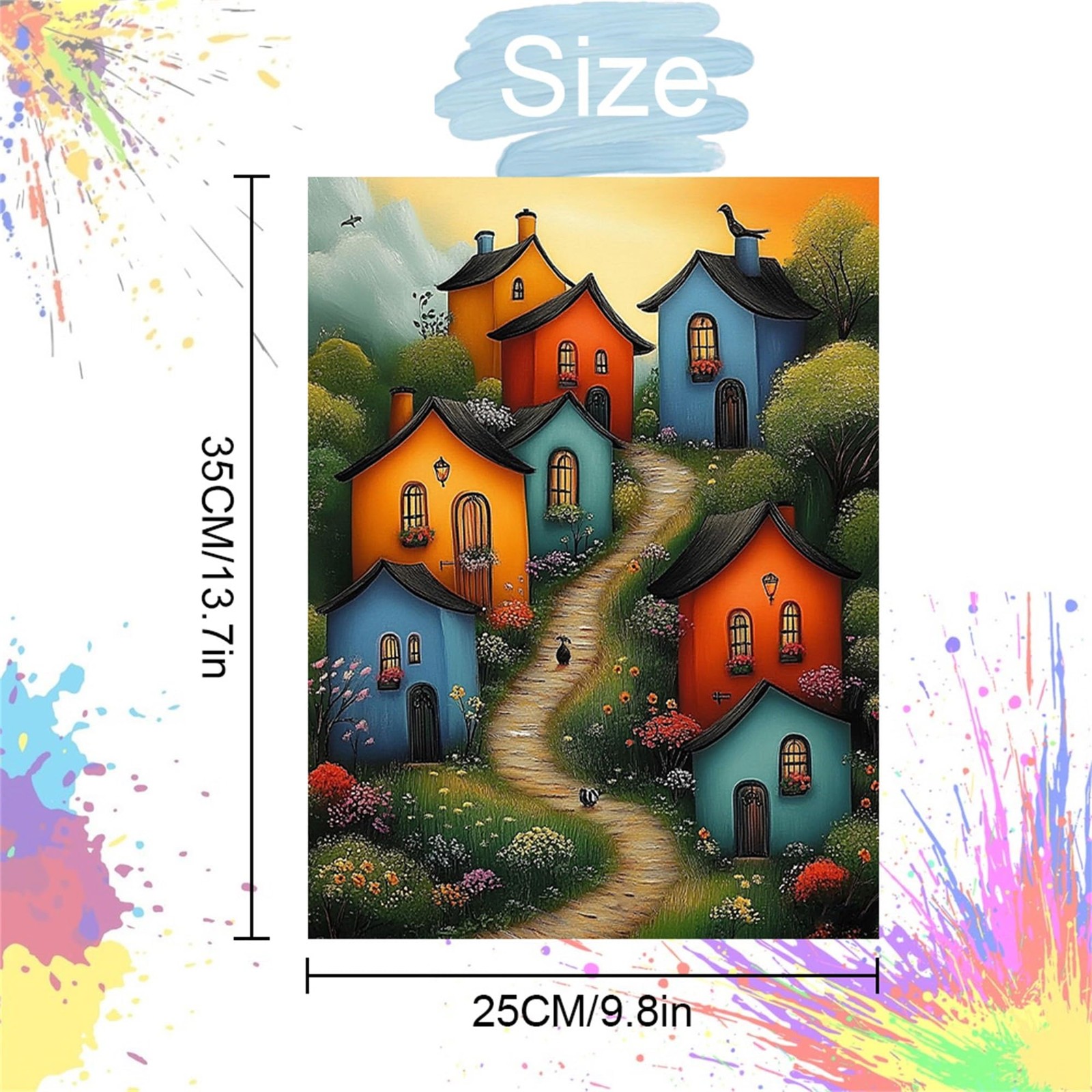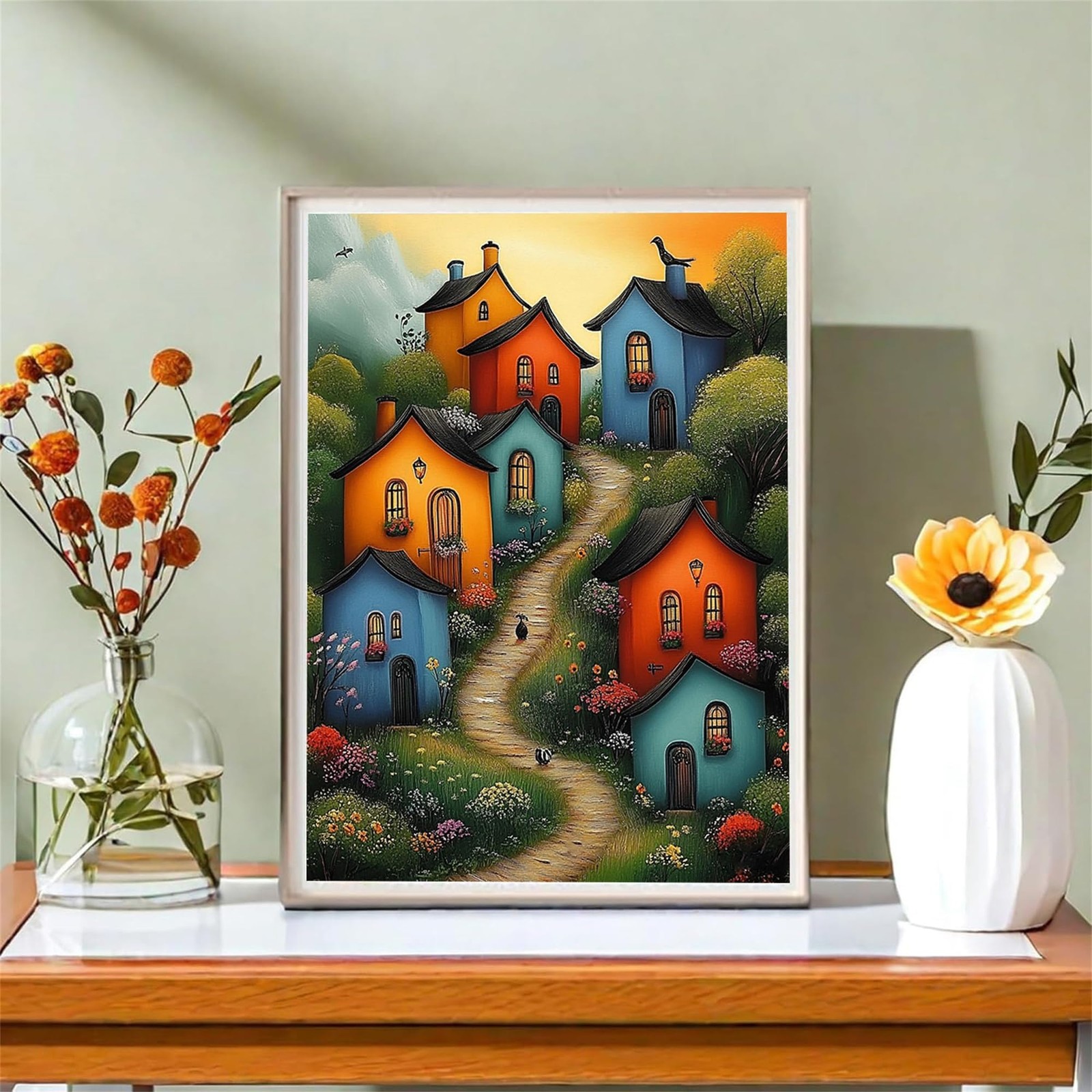 Framed Whimsical Village House Paint by Numbers Kit for Adults Home Art Decor
