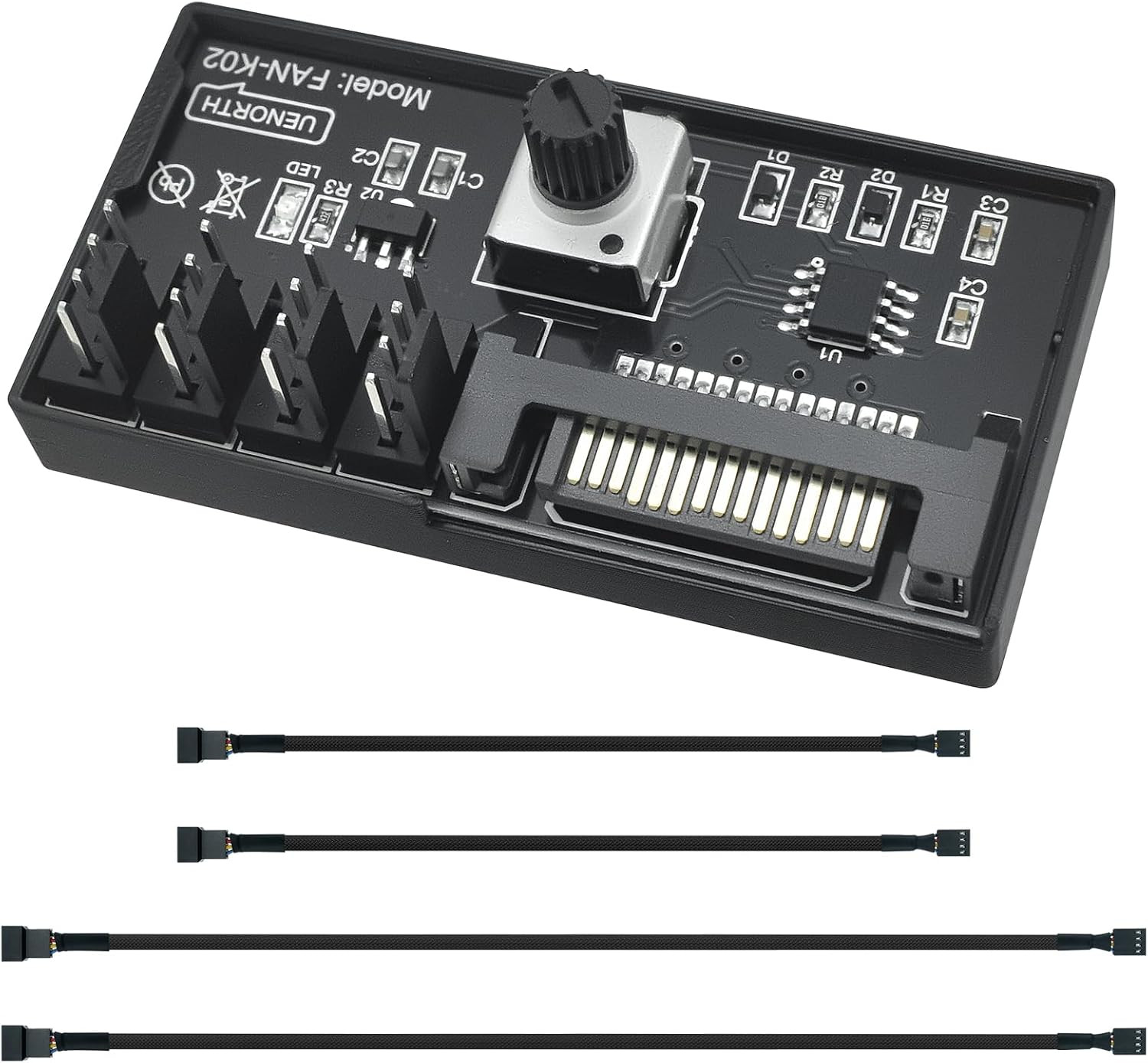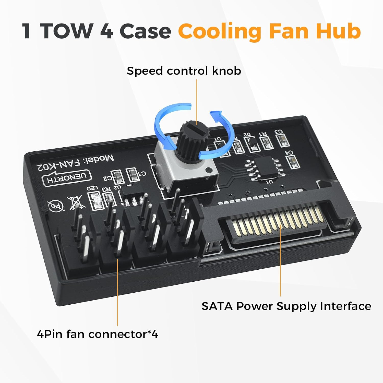 12V 4 Pin PWM Fan Speed Controller, PC Chassis Fan Adapter Hub Powered by SAT...