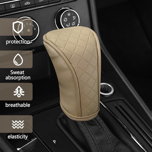 Car Gear Shift Cover, Leather Shift Knob Cover, Anti-Slip Breathable 1 PC Beige