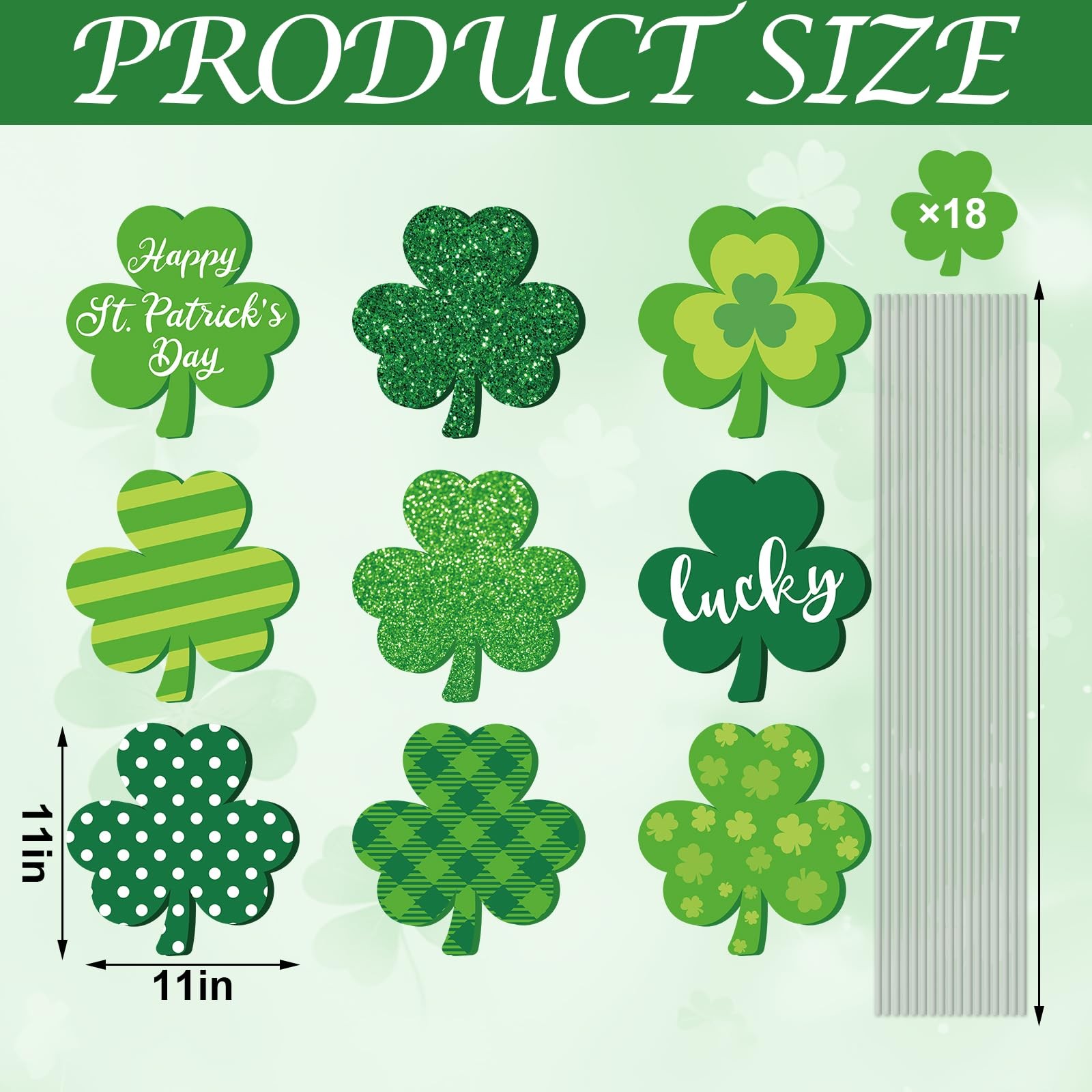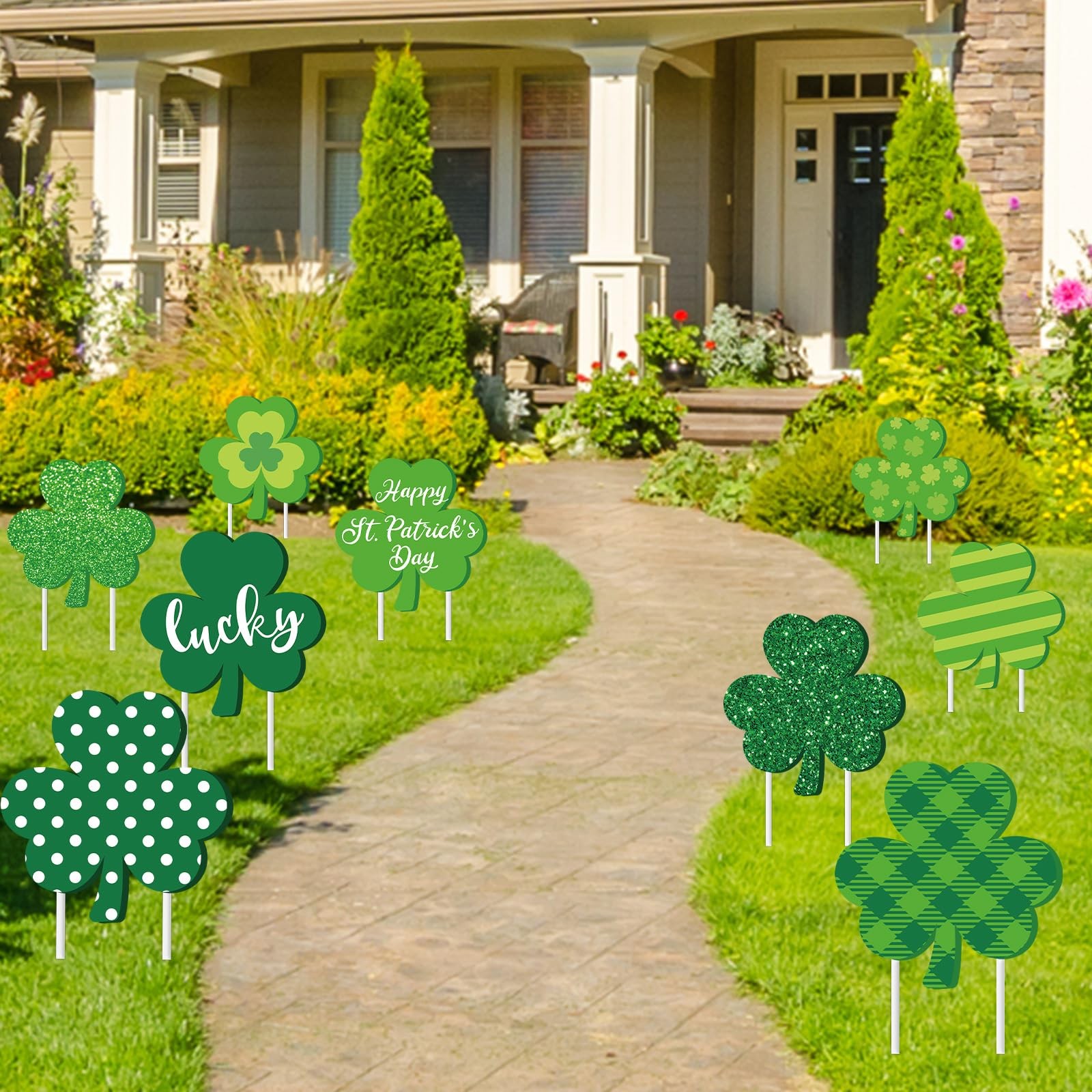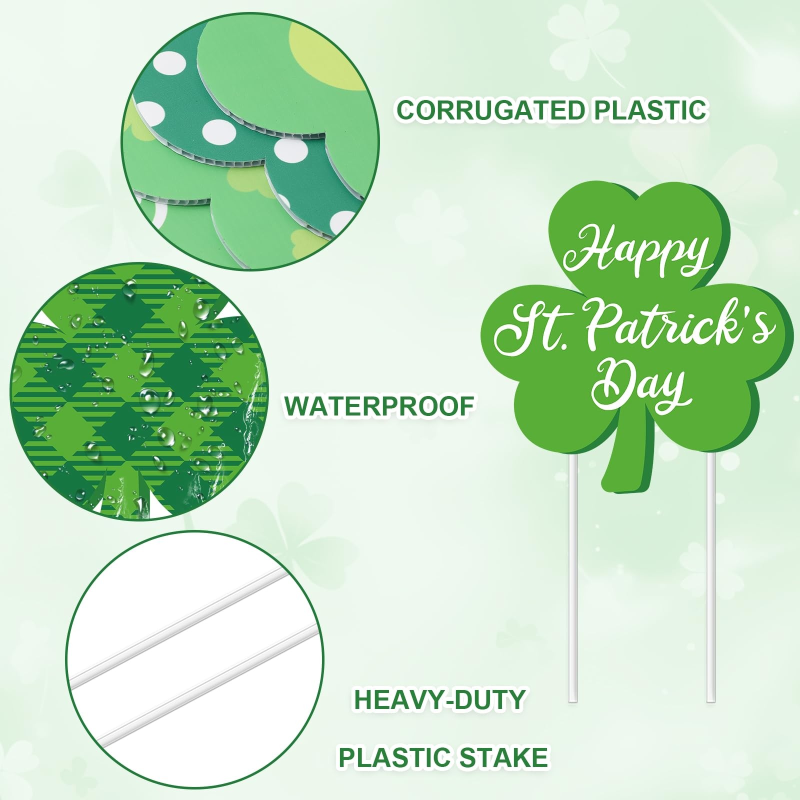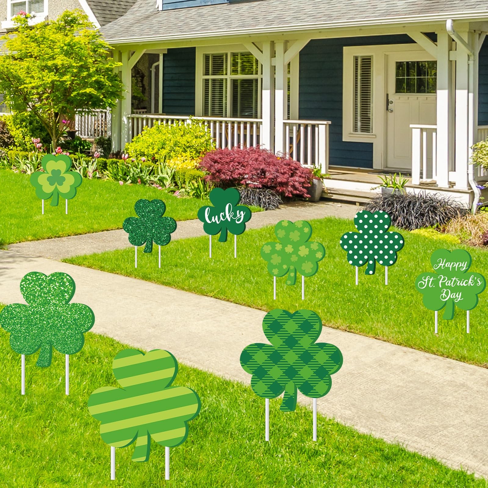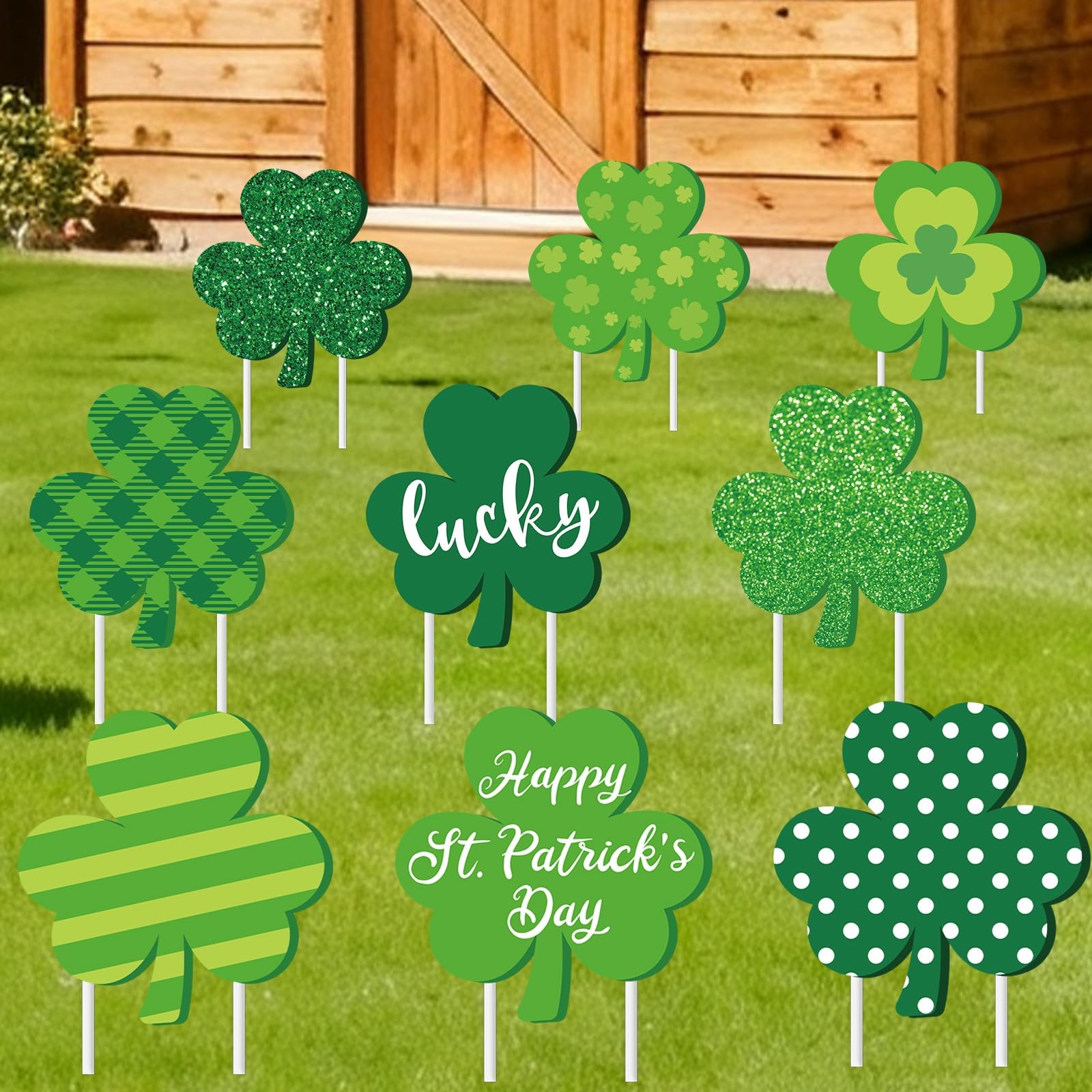 9Pcs St. Patrick' s Day Yard Sign with 18 Stakes Lucky Clover Shamrock Lawn Sig
