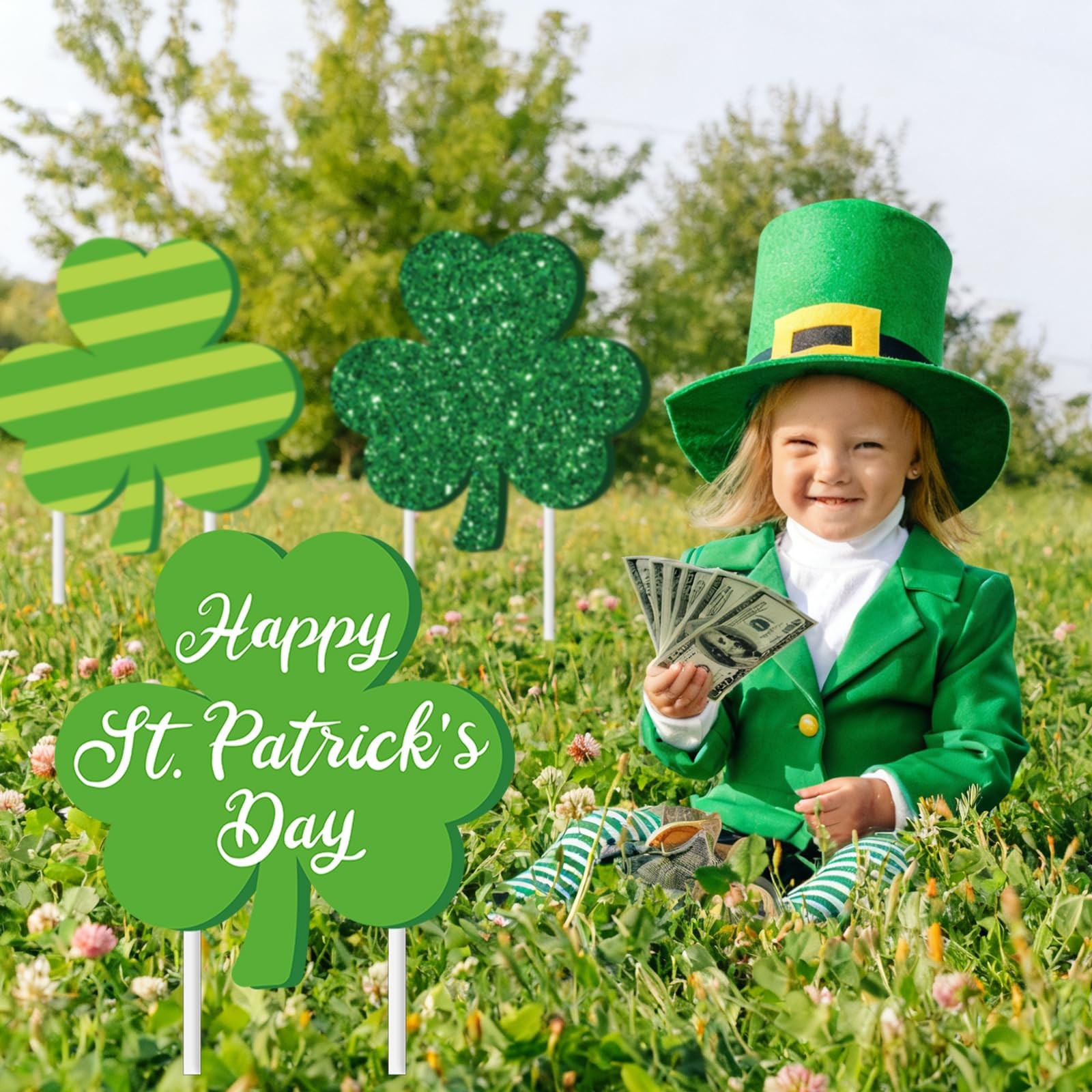 как выглядит 9Pcs St. Patrick s Day Yard Sign with 18 Stakes Lucky Clover Shamrock Lawn Sig фото