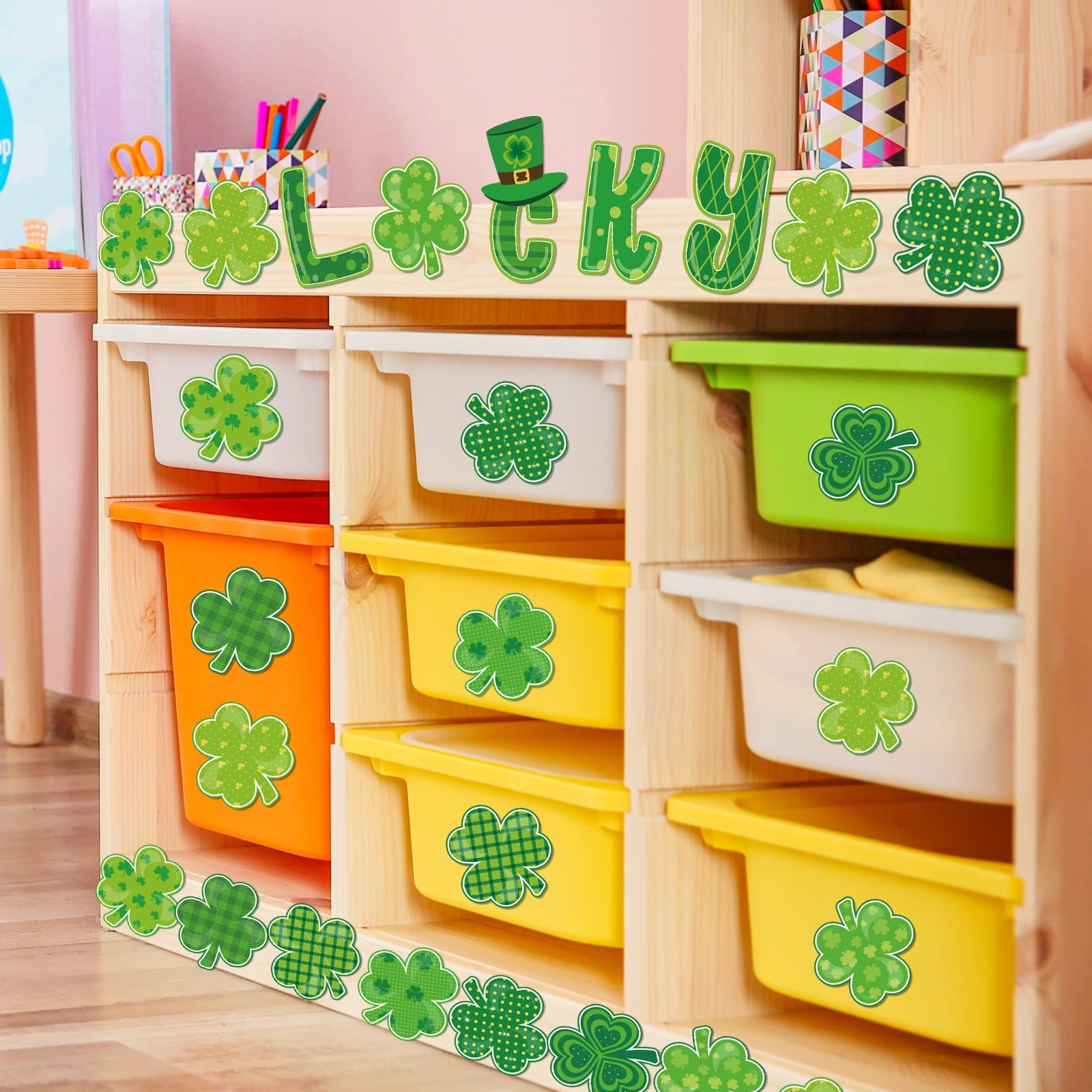 как выглядит St. Patricks Day Shamrock Cut-Outs Lucky Clover Classroom Bulletin Board Decor фото